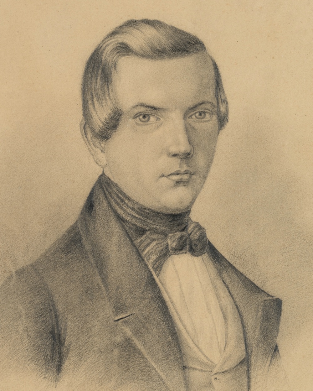 Karl Moritz Lämmel (1822 Leipzig – 1866 ), Porträt des Musikers Fr. Eduard Lämmel (*1819), um 1840, Bleistift