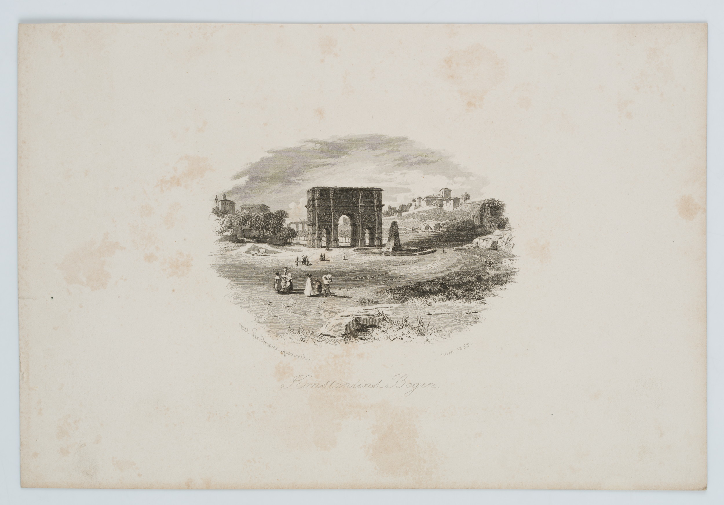 • Bezeichnung: Unten mittig im Druck signiert: “Karl Lindemann Frommel | Rom 1865”. Unten mittig im Druck bezeichnet: “Konstantin Bogen”.