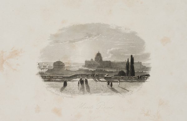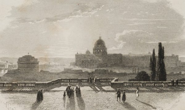 - Keywords: City Veduta, Monte Pincio, View, St. Peter’s Basilica, Castel Sant Angelo, Castel Sant’Angelo, 19th century, Romanticism, Cities, Italy, Rome (Latium),