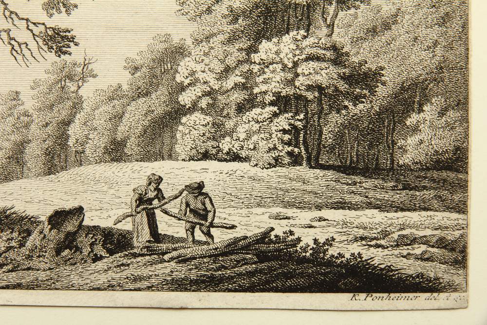 Kilian Ponheimer (1757 Wien – 1828 ebd.), Bauer u Magd sammeln Totholz auf Waldlichtung, , Radierung