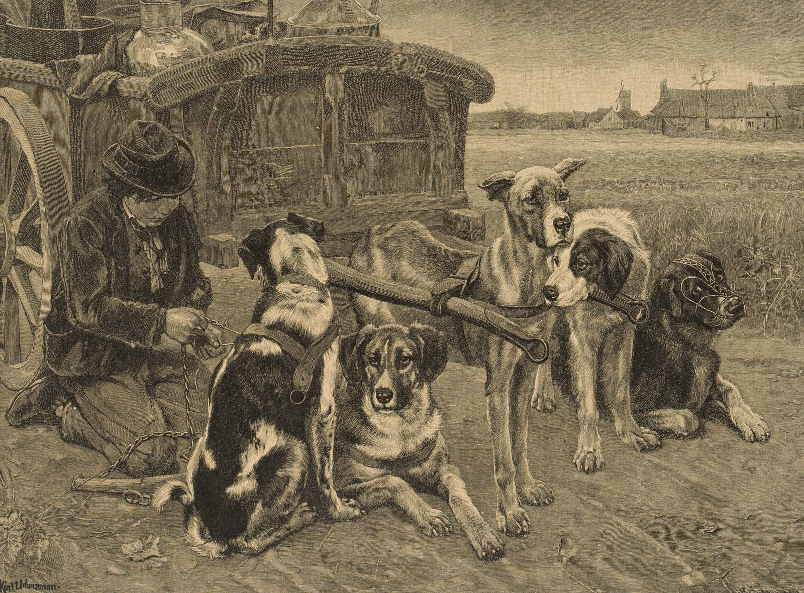 K. UCHERMANN (*1855), UCHERMANN, ‘Früh auf dem Wege’. Einspannung der Hunde, 190