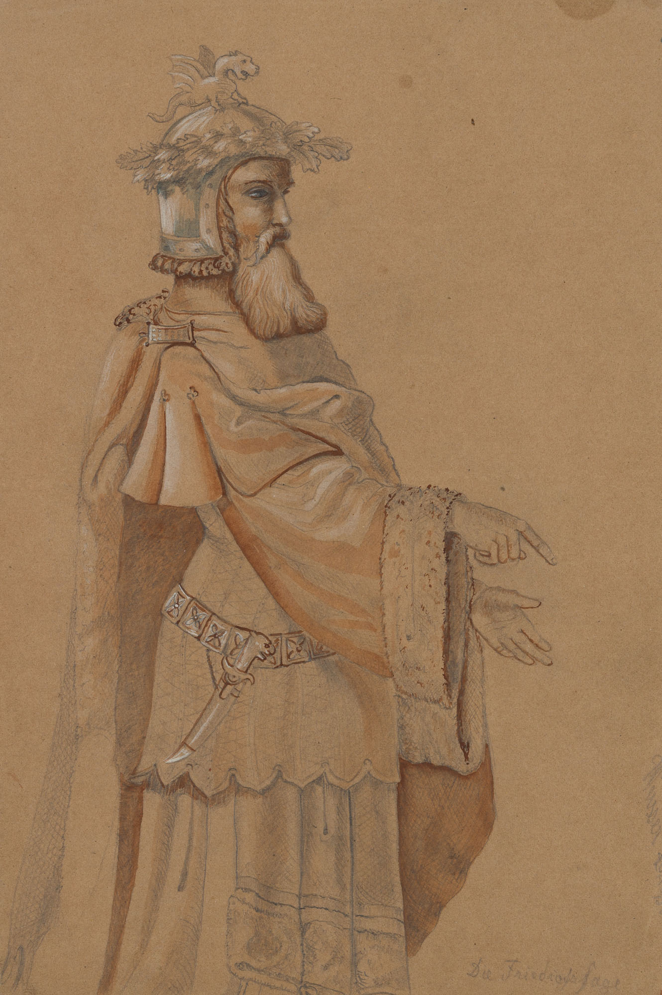 Karl Ludwig Weisser (1823 Unterjettingen – 1879 Stuttgart), Illustration of Frederick I Barbarossa, 19th century, Pencil