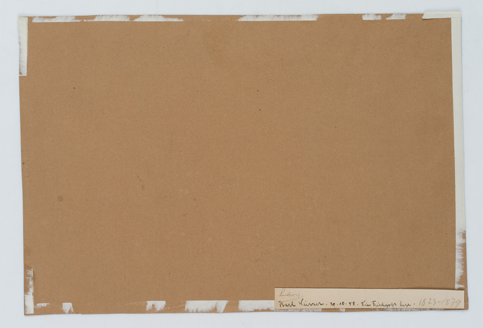 • Zustand: Guter Zustand. Das Papier ist stärker gebräunt, oben rechts in der Ecke ein kleiner Fleck, rückseitig alte Spuren einer Verklebung und ein aufgeklebter Zettel mit Künstlerangaben.