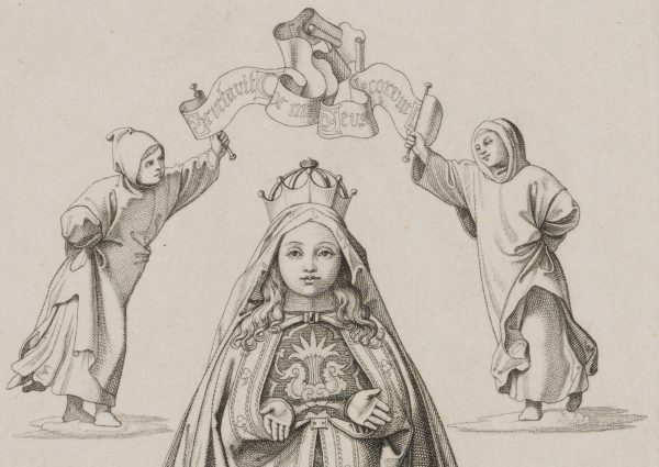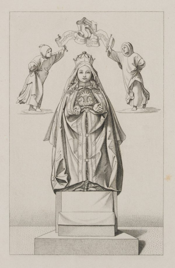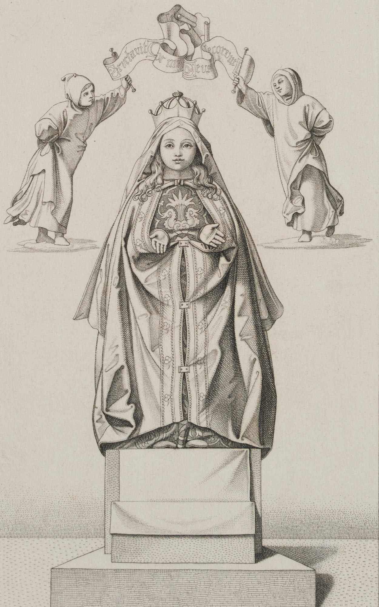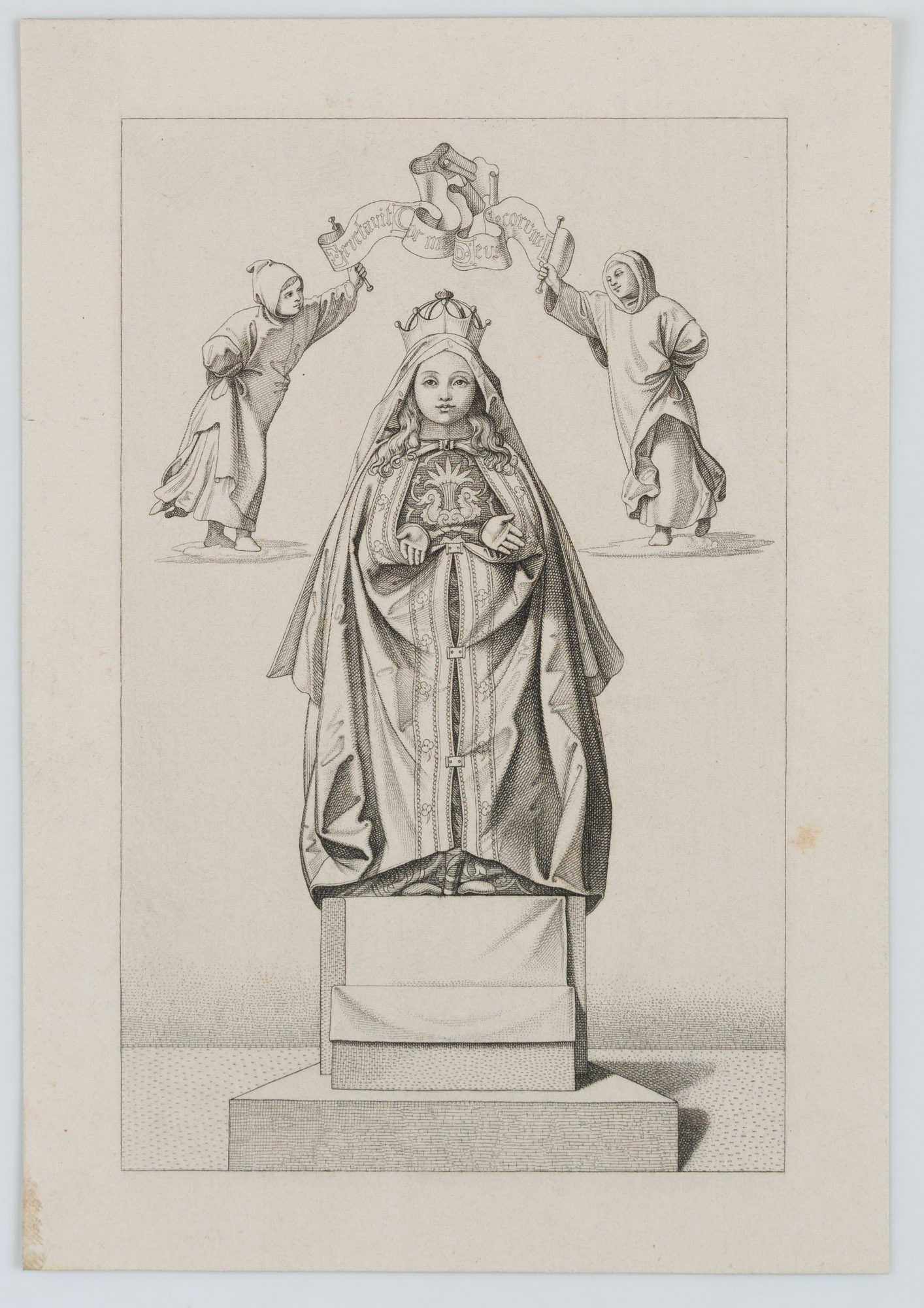 Karl Kappes (1821 Frankfurt am Main – 1857 ebd.) nach Edward Jakob von Steinle (1810 Wien – 1886 Frankfurt am Main), Probedruck: Darstellung der Madonna (Maria Mutter Gottes), Herz Mariä, Stahlstich, um 1840, Stahlstich