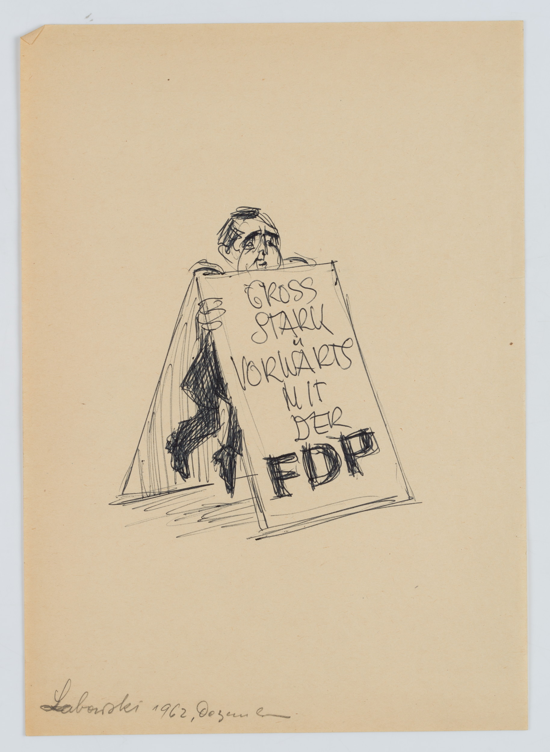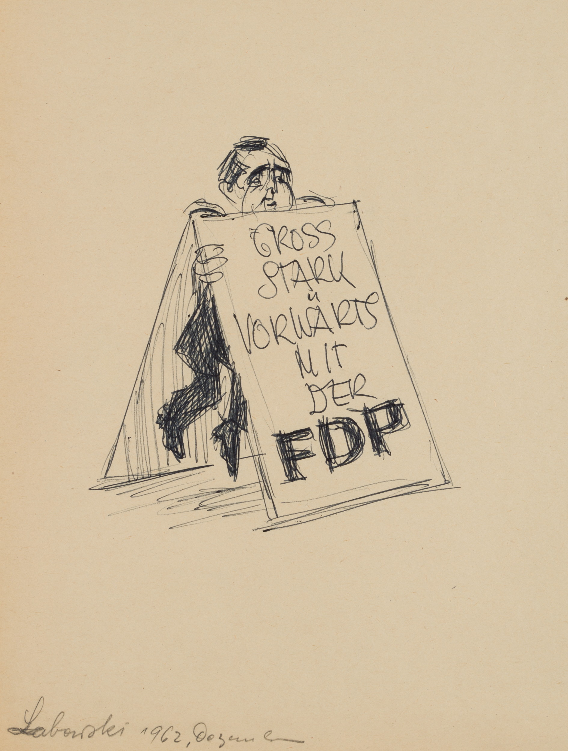 Kay: Paul Labowsky (born 1923 Berlin), Cartoon, Gross Stark Forward with the FDP, 1962, Ball point