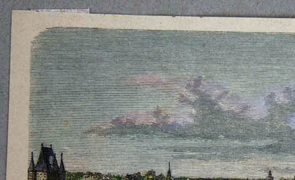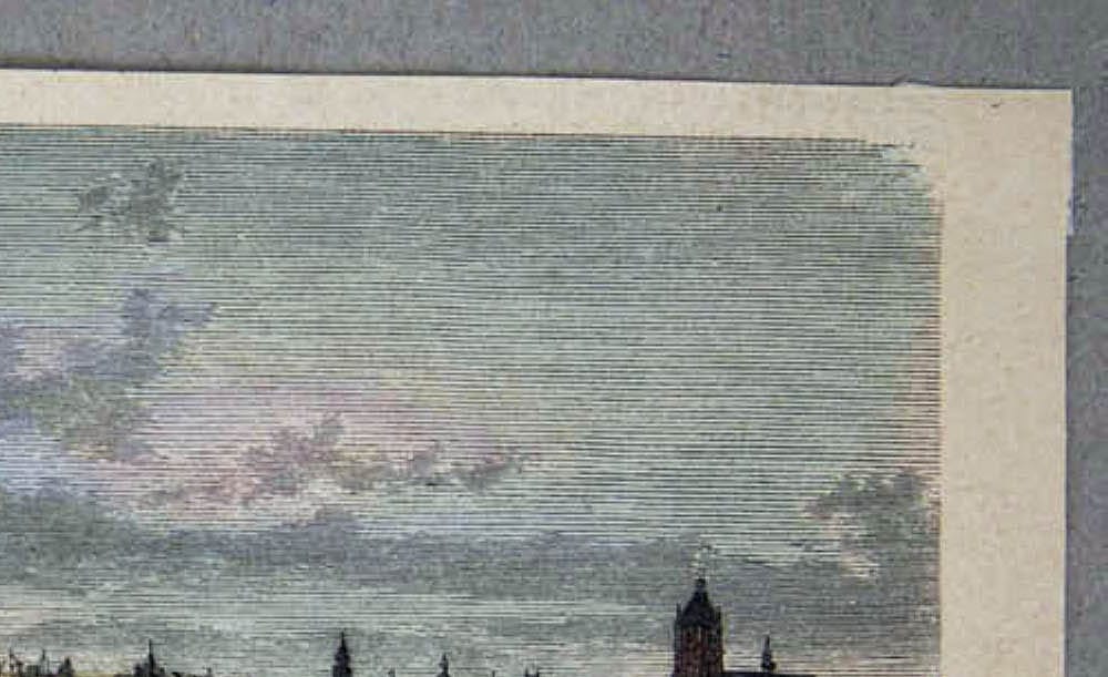 - Beschreibung: Ernst Kirchhoff, Frankfurt am Main, kolorierter Holzstich, um 1850. Beschreibung: Kolorierter Holzstich von Ernst Kirchhoff, bezeichnet unten: “Nr. 3378. Frankfurt a. M. in der Mitte des 18. Jahrhunderts. Nach Sal. Klimer”. Ausschnitt aus einem Lexikon? Sehr schöne Ansicht Frankfurts über die Alte Brücke hinweg. Verso Fragment von Erklärungen zu Namen und Begriffen.