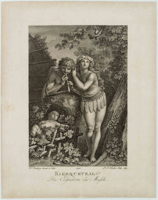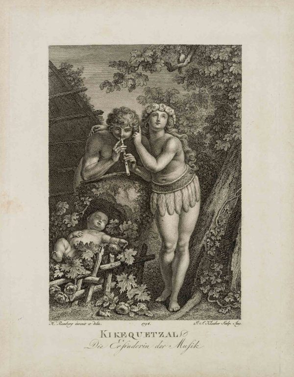 Ignaz Sebastian Klauber (1753 Augsburg – 1817 St. Petersburg) after Johann Heinrich Ramberg (1763 Hannover – 1840 ibid.), Kikequetzal The inventor of music, 1794, Copper engraving