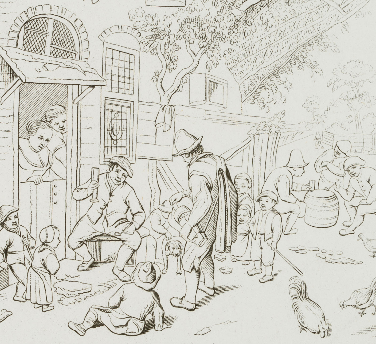 - Bezeichnung: Unterhalb der Darstellung typographisch betitelt, bezeichnet und datiert: “Des. par Michailoff 1812. / S. Petersbourg / Gravé chez Klauber. / du Cabinet de Mr. Duval / Sur bois…”. Über der Darstellung bezeichnet: “A. V. OSTADE. 1670.”.