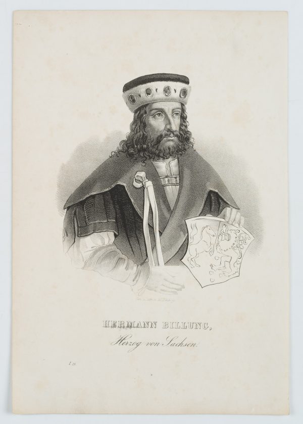 Maximilian Knäbig (1804 Meißen – nach 1876 ) nach Maximilian Knäbig (1804 Meißen – nach 1876 ), KNÄBIG, Portrait des Hermann Billung. Herzog von Sachsen., 19. Jahrhundert, Lithographie