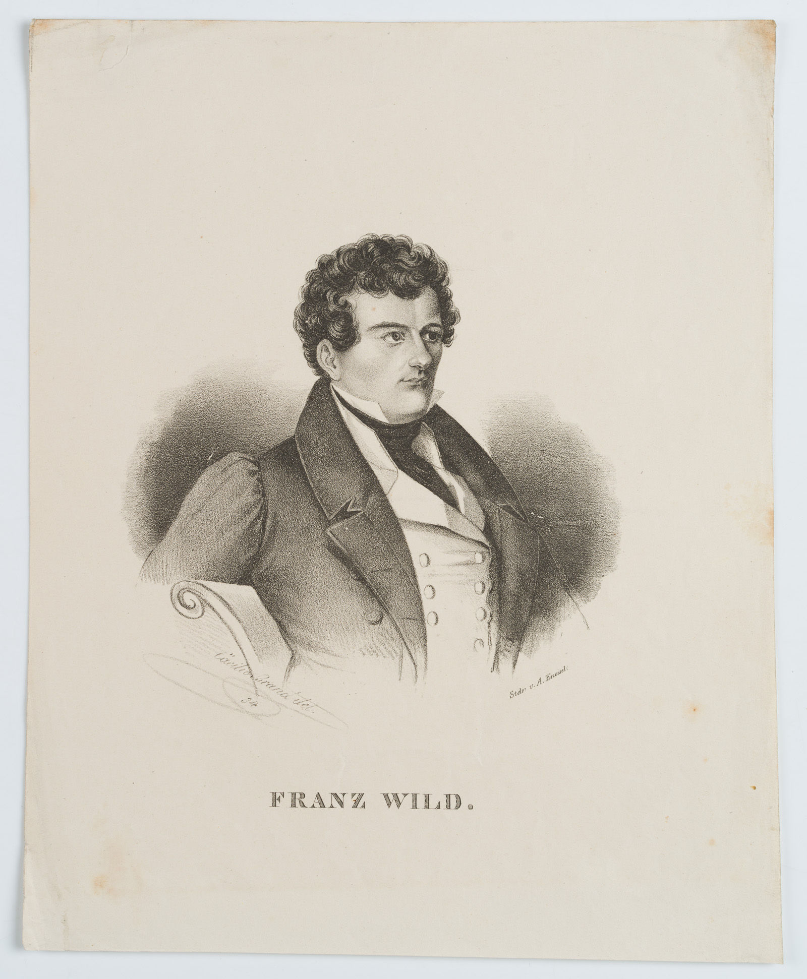 August Kneisel (19. Jahrhundert) nach Cäcilie Brandt (1814 Leipzig – 1852 ebd.), KNEISEL; BRAND, Porträt des Opernsängers Franz Wild., 19. Jahrhundert, Lithographie