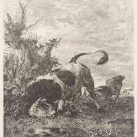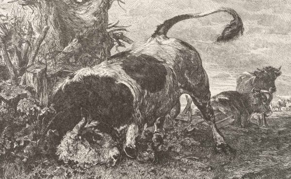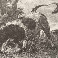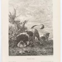 Theodor Knesing (1840 Leipzig – around 1927 Munich) after Victor Weishaupt (1848 Munich – 1905 Karlsruhe), Animal depiction, Wild bull at pasture, 19th century, Reproduction