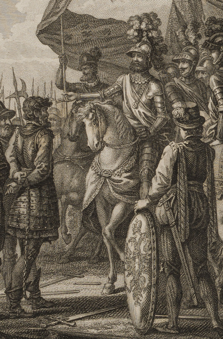 Clemens Kohl (1754 Prag – 1807 Vienna) after Vincenz Georg Kininger (1767 Regensburg – 1851 Vienna), ‘Emperor Rudolph magnanimously forgives his conquered enemy’, book illustration, 18th century, Copper engraving