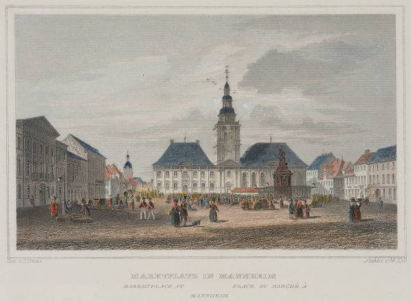 Joseph Maximilian Kolb (vor 1818 – nach 1859 ) nach Giacomo Pozzi (1814 Mannheim – 1897 Köthen), Marktplatz in Manheim, 19. Jahrhundert, Stahlstich