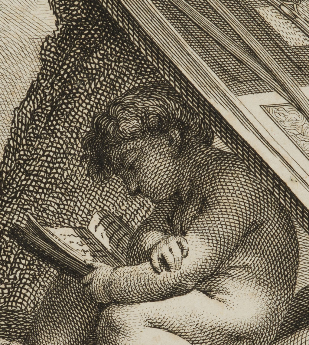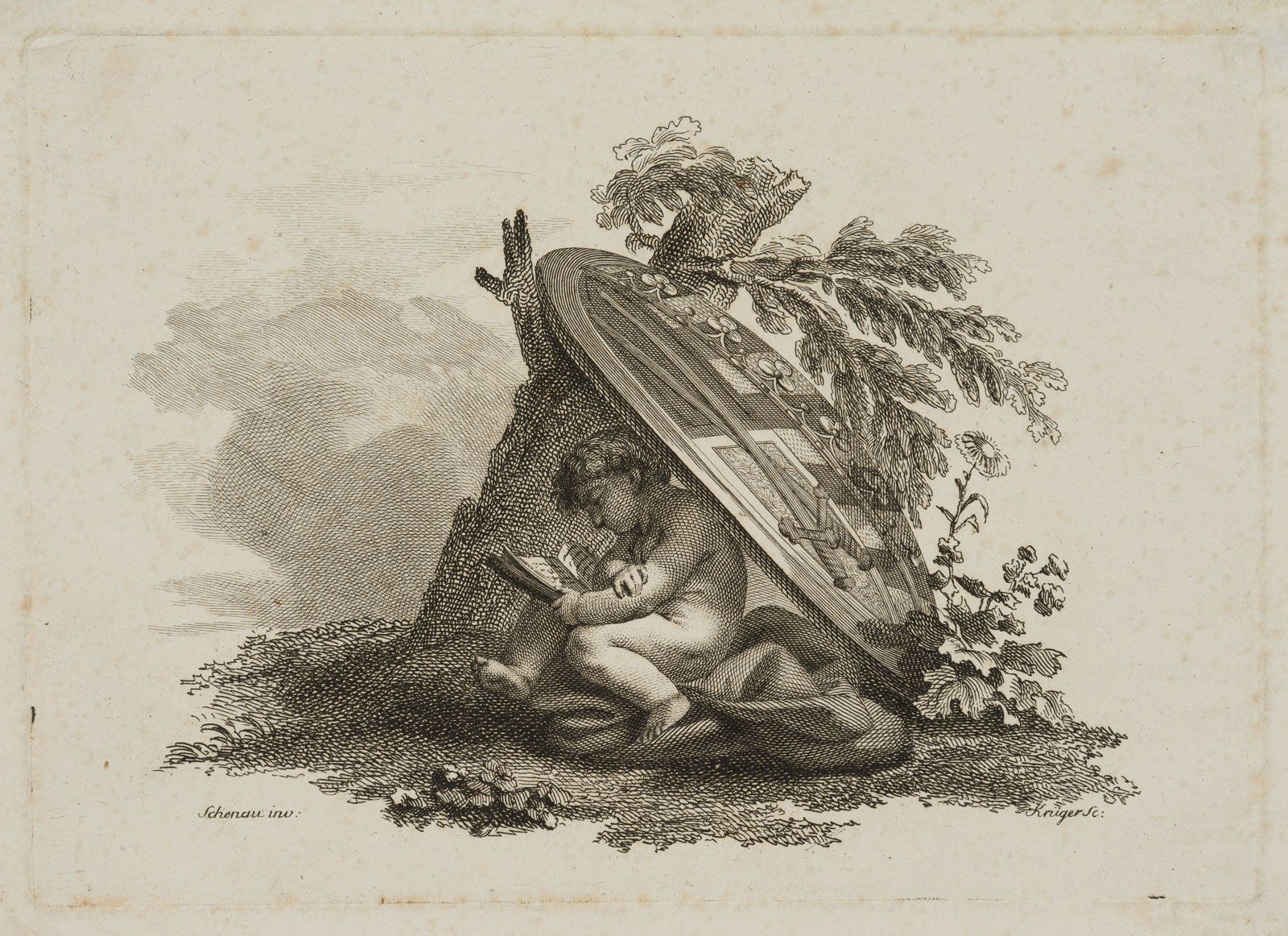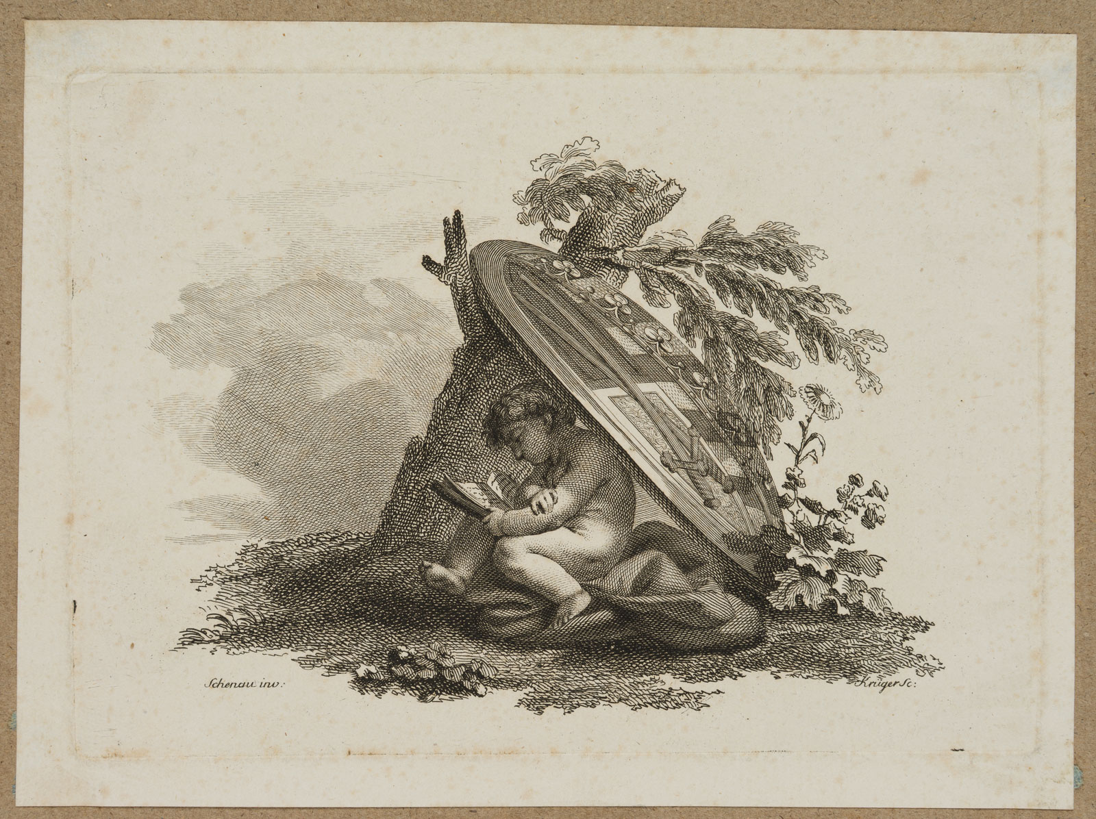 Ephraim Gottlieb Krüger (1756 Dresden – 1834 ibid.) after Johann Eleazar Schenau (1737 Großschönau – 1806 Dresden), Vignette: “Putto under shield”., 19th century, Copper engraving