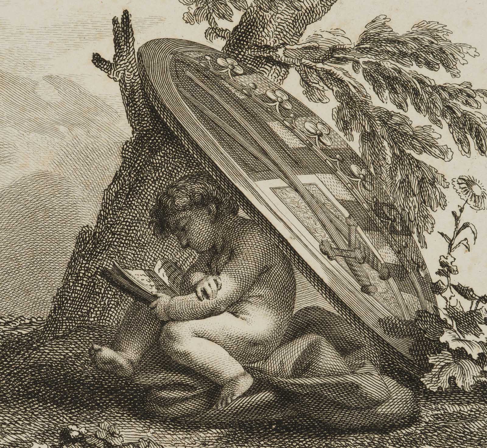 Ephraim Gottlieb Krüger (1756 Dresden – 1834 ebd.) nach Johann Eleazar Schenau (1737 Großschönau – 1806 Dresden), Vignette: “Putto unter Schild”, 19. Jahrhundert, Kupferstich