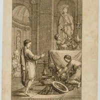 Johann Matthias Schröckh (1733 Vienna – 1808 Wittenberg) was a German historian and literary scholar, poet and physician; illustration to Schröckh’s “Allgemeiner Weltgeschichte für Kinder” (General World History for Children), which he published in four parts in Leipzig from 1779 to 1784. He regarded his “Weltgeschichte” as a kind of reading book for children with descriptions from ancient history, religious history and German as well as European history, which were illustrated with numerous copperplate engravings after drawings by Bernhard Rode. Rode’s illustrations beautifully demonstrate his ability to visually realise special or unusual historical and literary themes without being able to fall back on models. - Date: 18th century