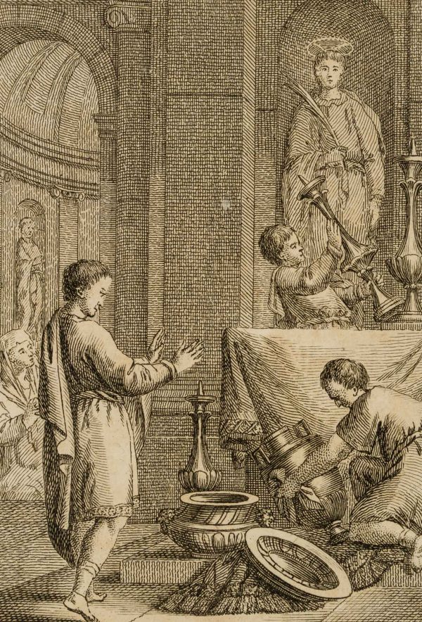 Franz Krüger (1797 Großbadegast – 1857 Berlin) after Bernhard Rode (1725 Berlin – 1797 ibid.), The Practice of Christianity, Illustration to Johann Matthias Schröckh’s History of the World, 18th century, Copper engraving