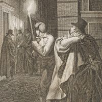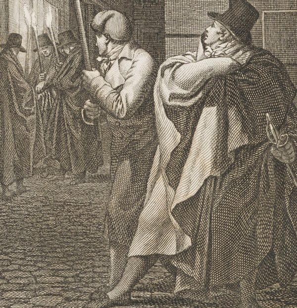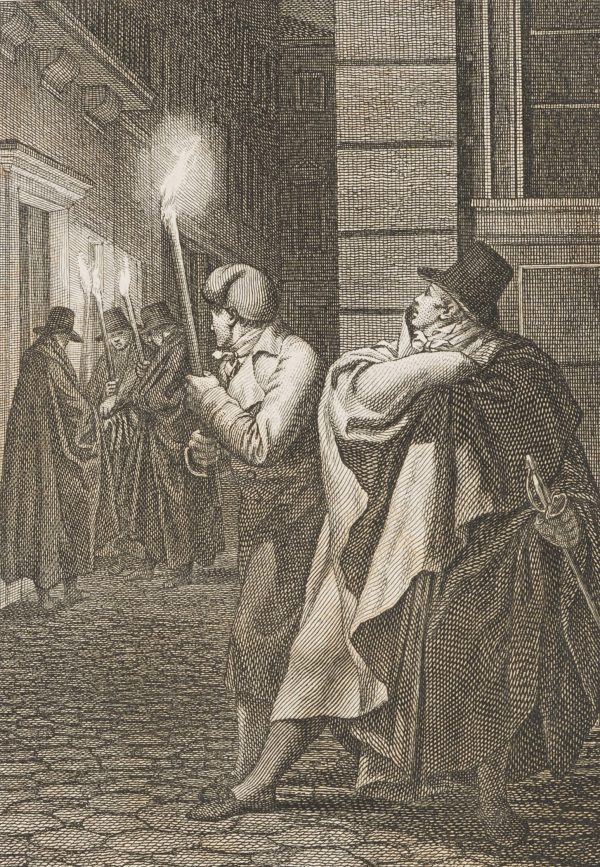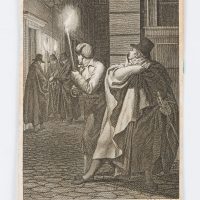 - Beschreibung: Es ist Nacht. Clavigo trifft auf die Leichenträger, die mit Fackeln in der Gasse stehen.
