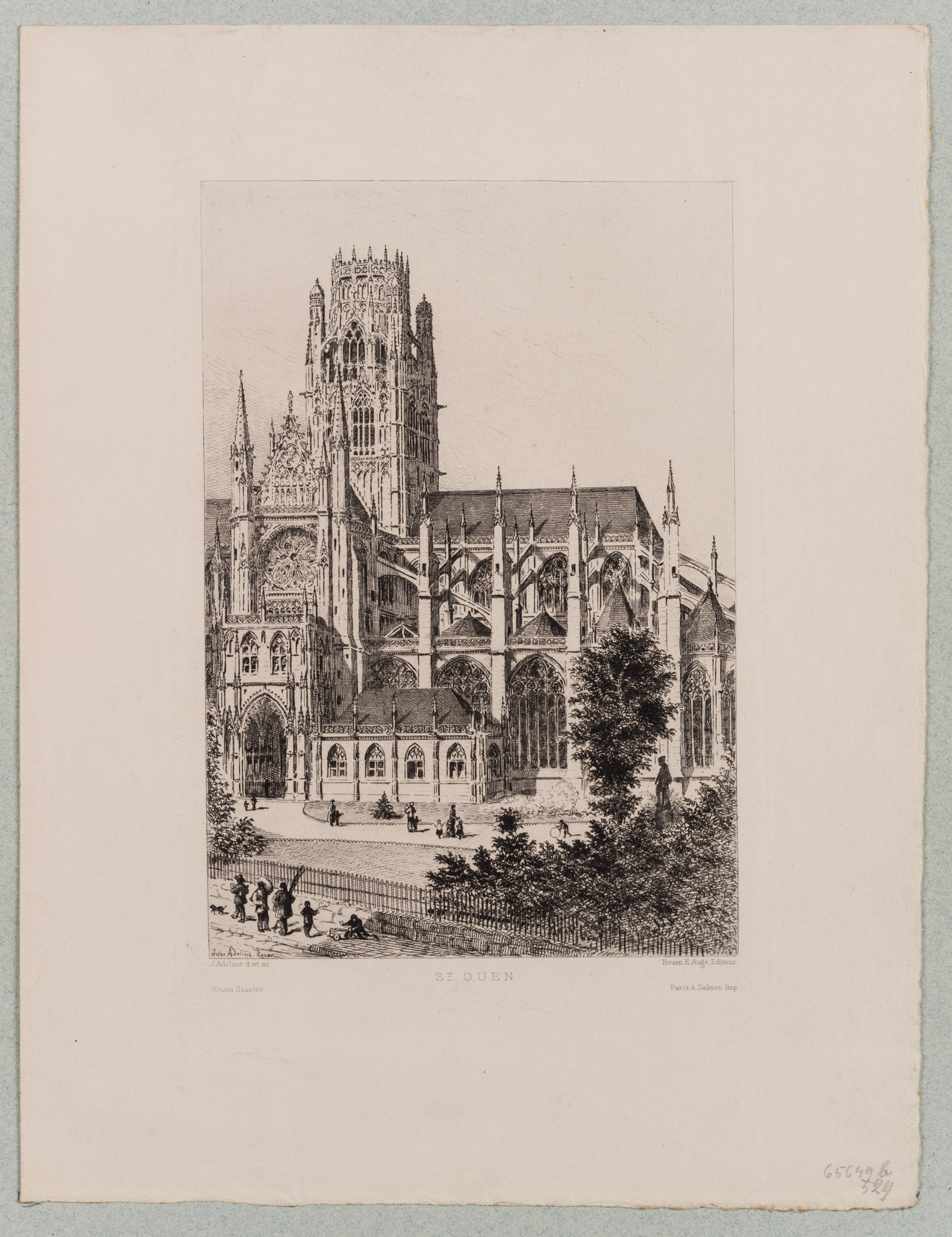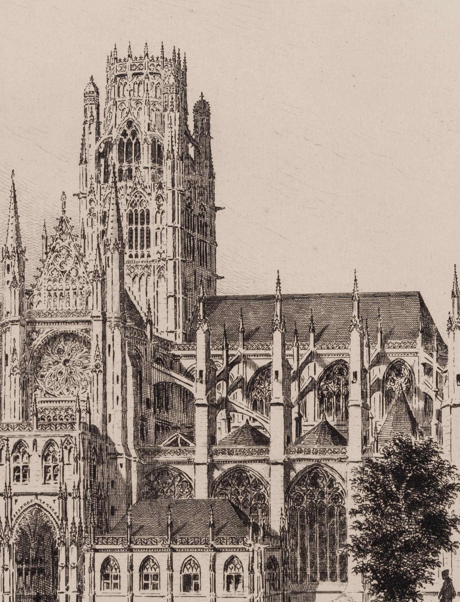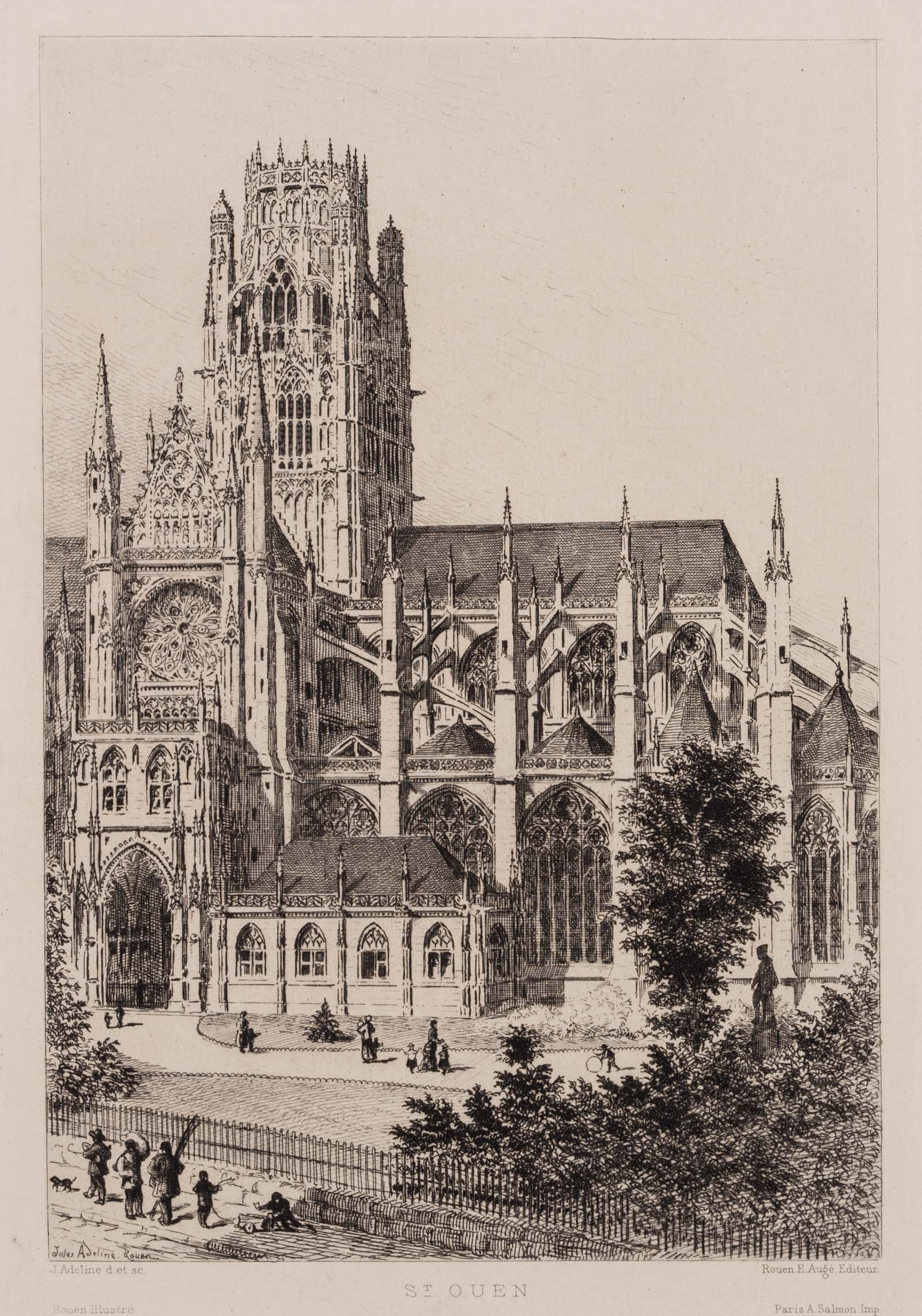 Louis Jules Adeline (1845 Rouen – 1909 ibid.), View of the Gothic abbey church of St-Ouen in Rouen, 19th century, Etching