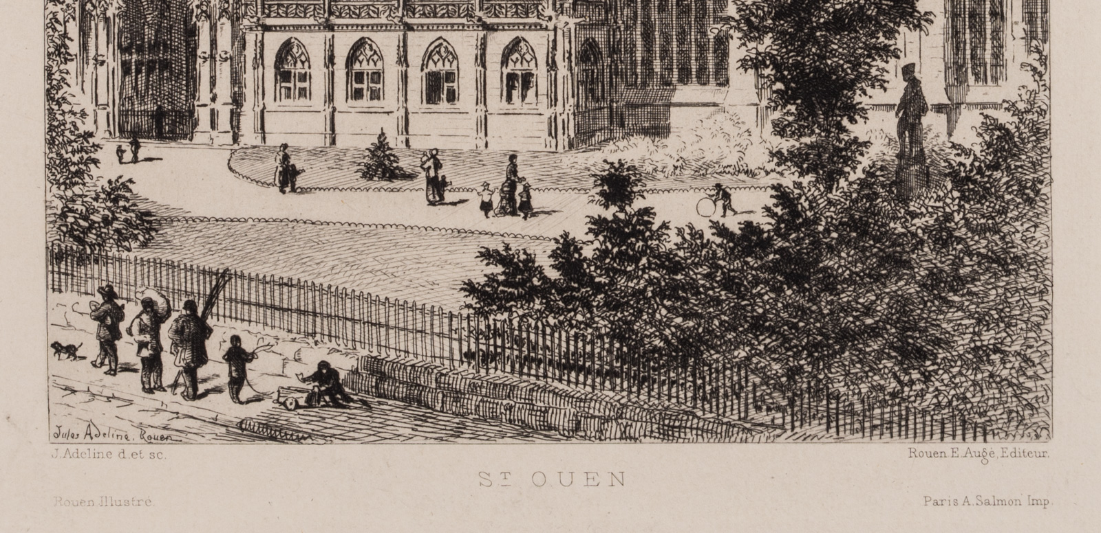 L. ADELINE (1845-1909), Ansicht d. Kirche St-Ouen in Rouen, Rad. Historismus