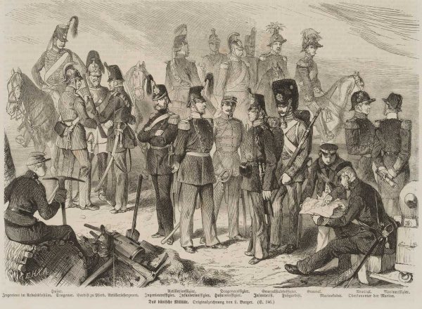 Ludwig Burger (19. Jahrhundert), Einheiten der Dänischen Militärtruppe, 19. Jahrhundert, Holzstich