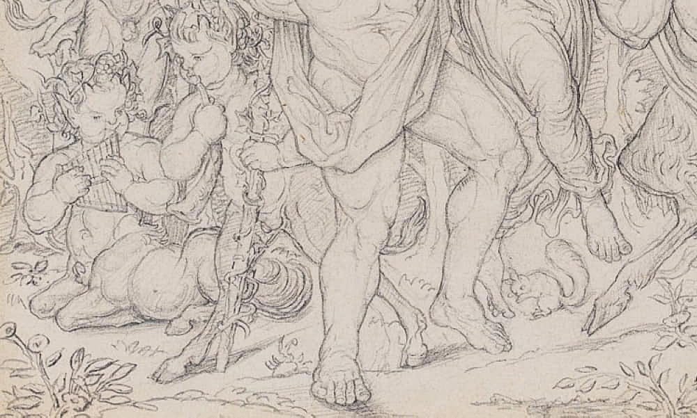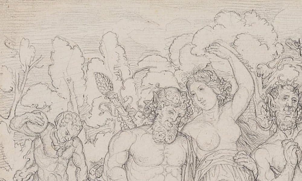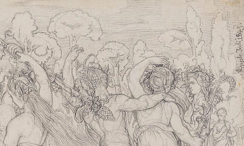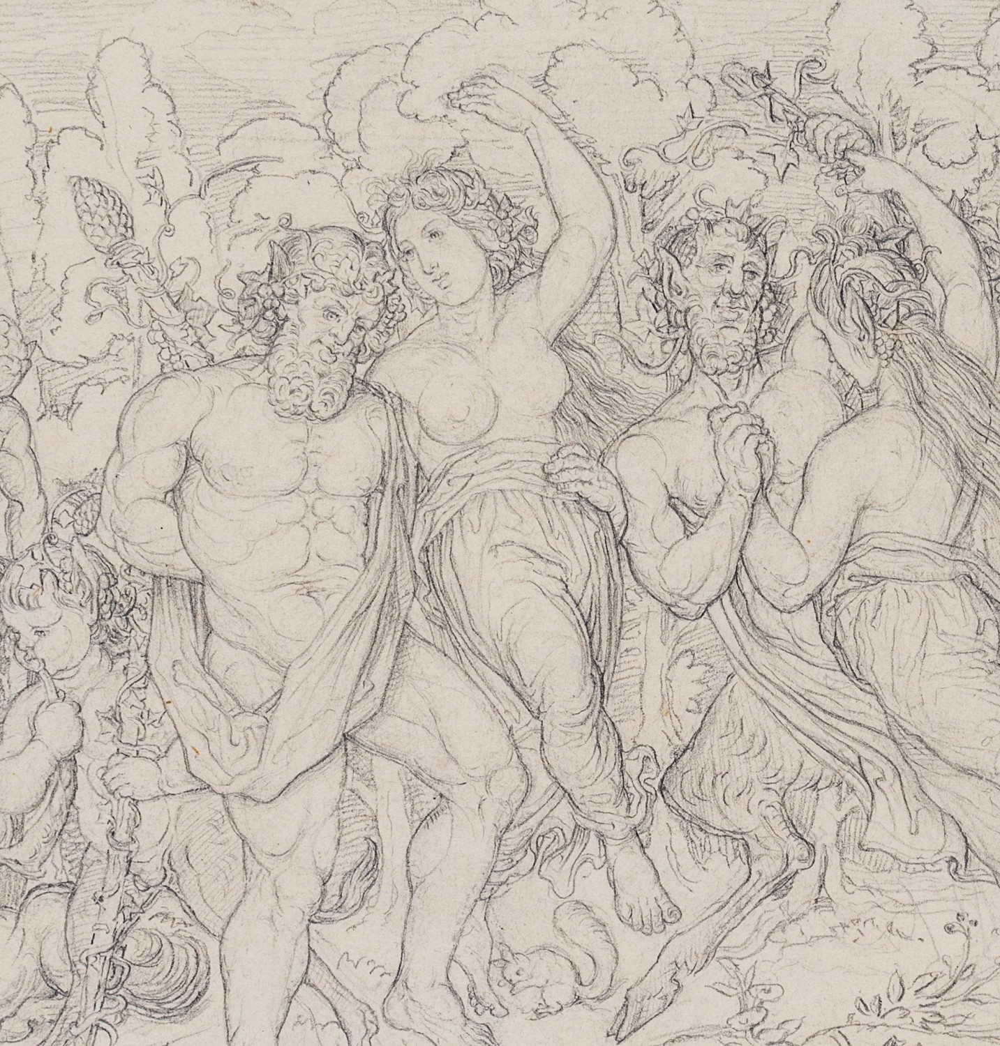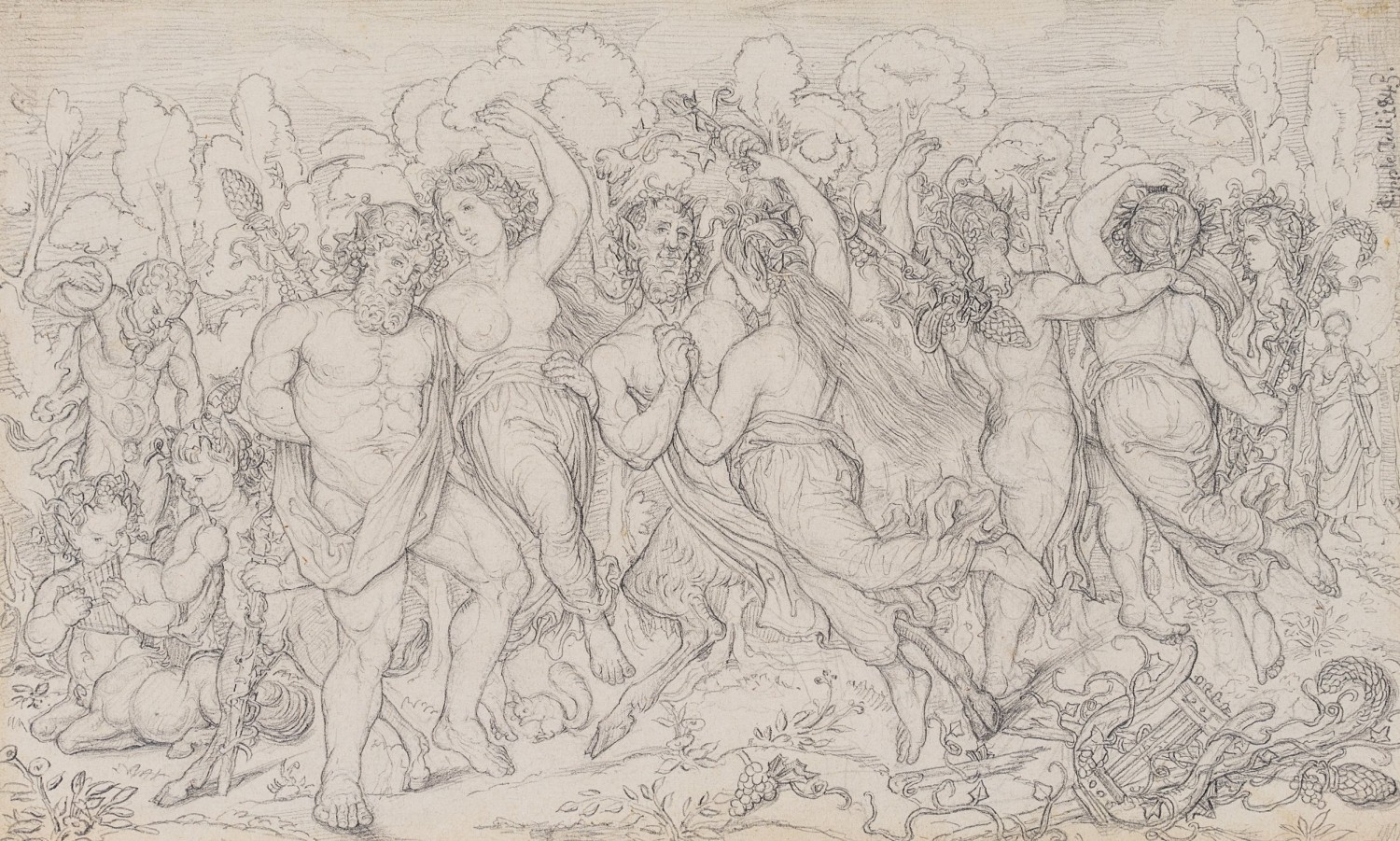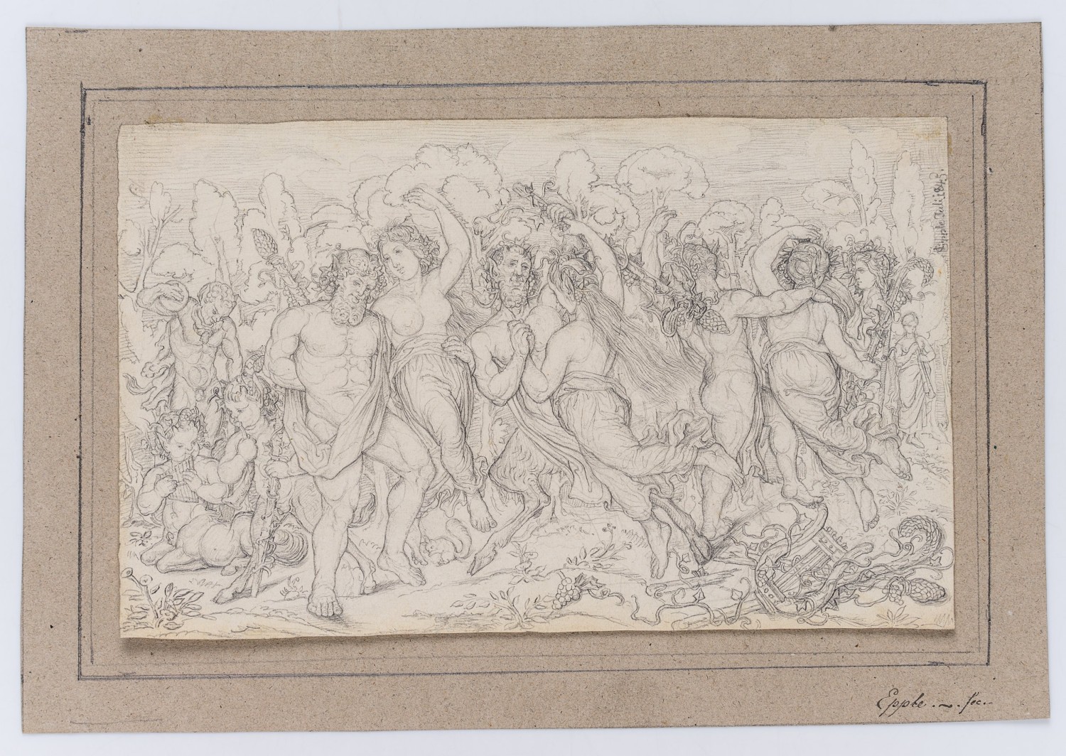 Ludwig Epple (*1829 Karlsruhe), Bacchuszug mit tanzenden Bacchanten, 1845, Bleistift