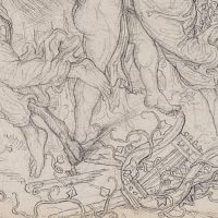 - Beschreibung: Muntere mythologische Szene mit ineinander verschlungenen weiblichen und männlichen Akten beim ausschweifenden Tanz und bacchantischen Gelage. Ludwig Epple war Schüler von Moritz von Schwind.