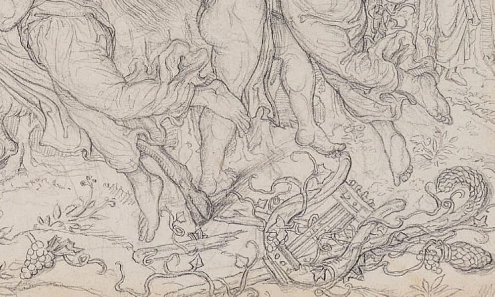 Ludwig Epple (born 1829 Karlsruhe), Bacchus procession with dancing bacchants, 1845, Pencil
