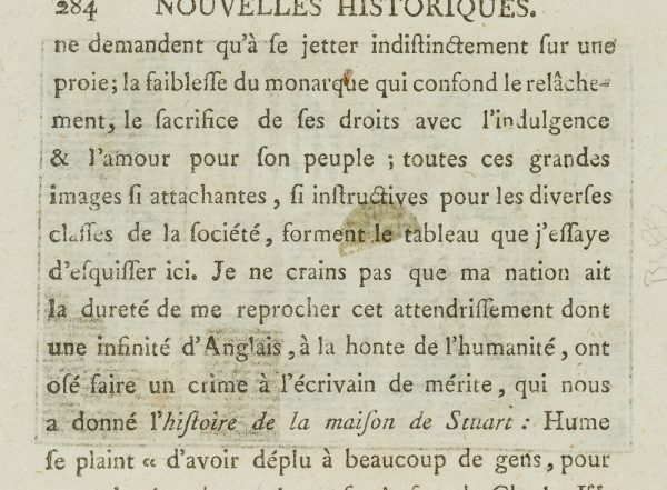 - Beschreibung: Verso französischer Text, Seite 284 aus: “Nouvelles Historiques”.
