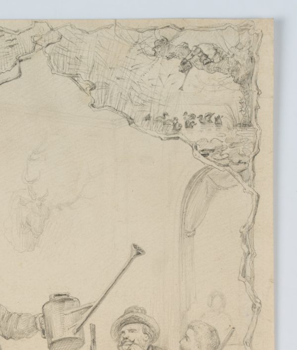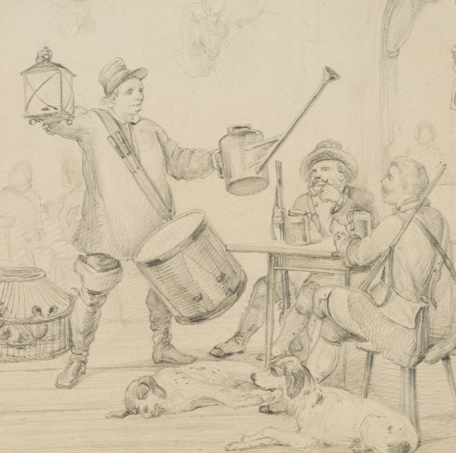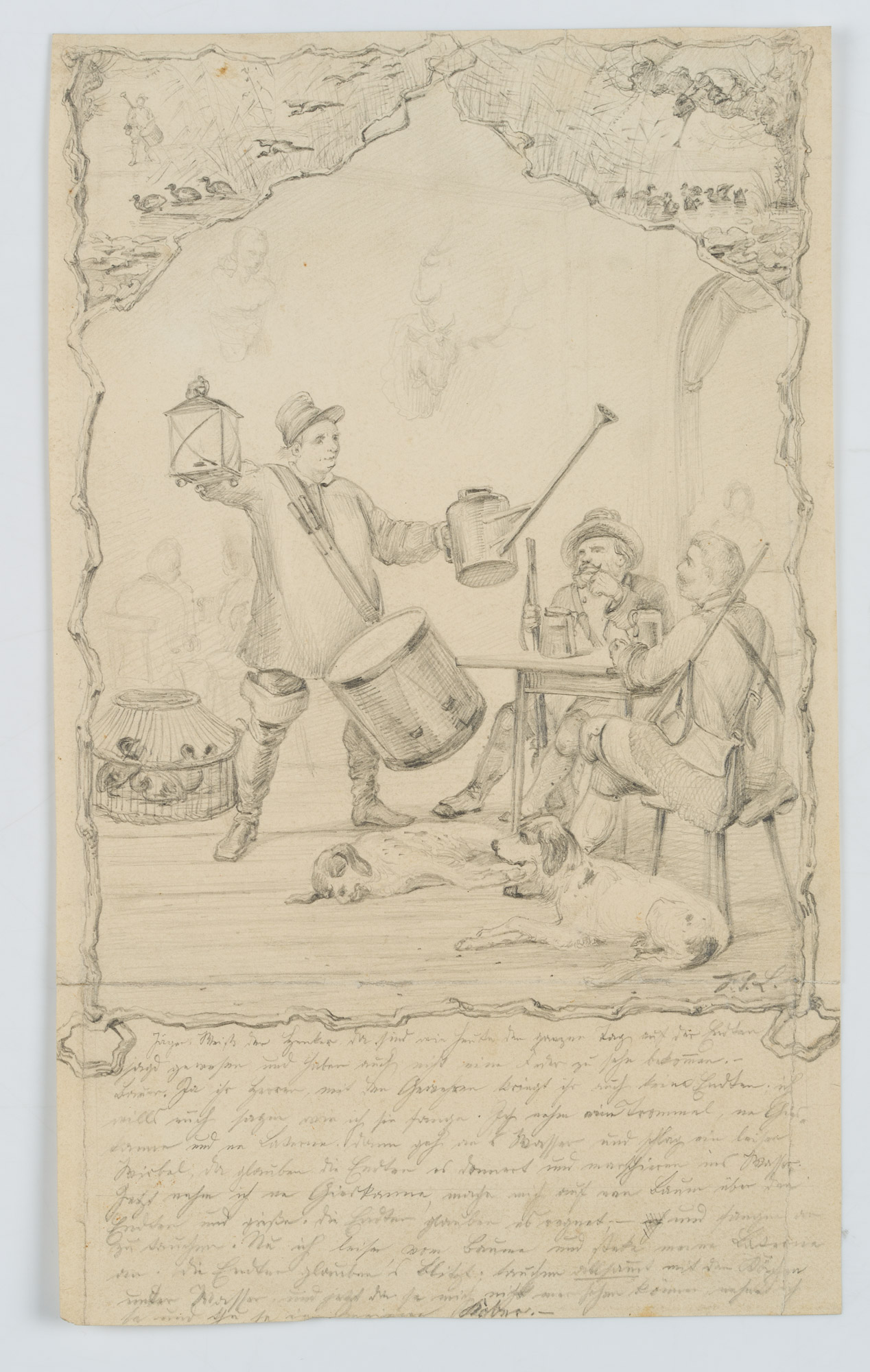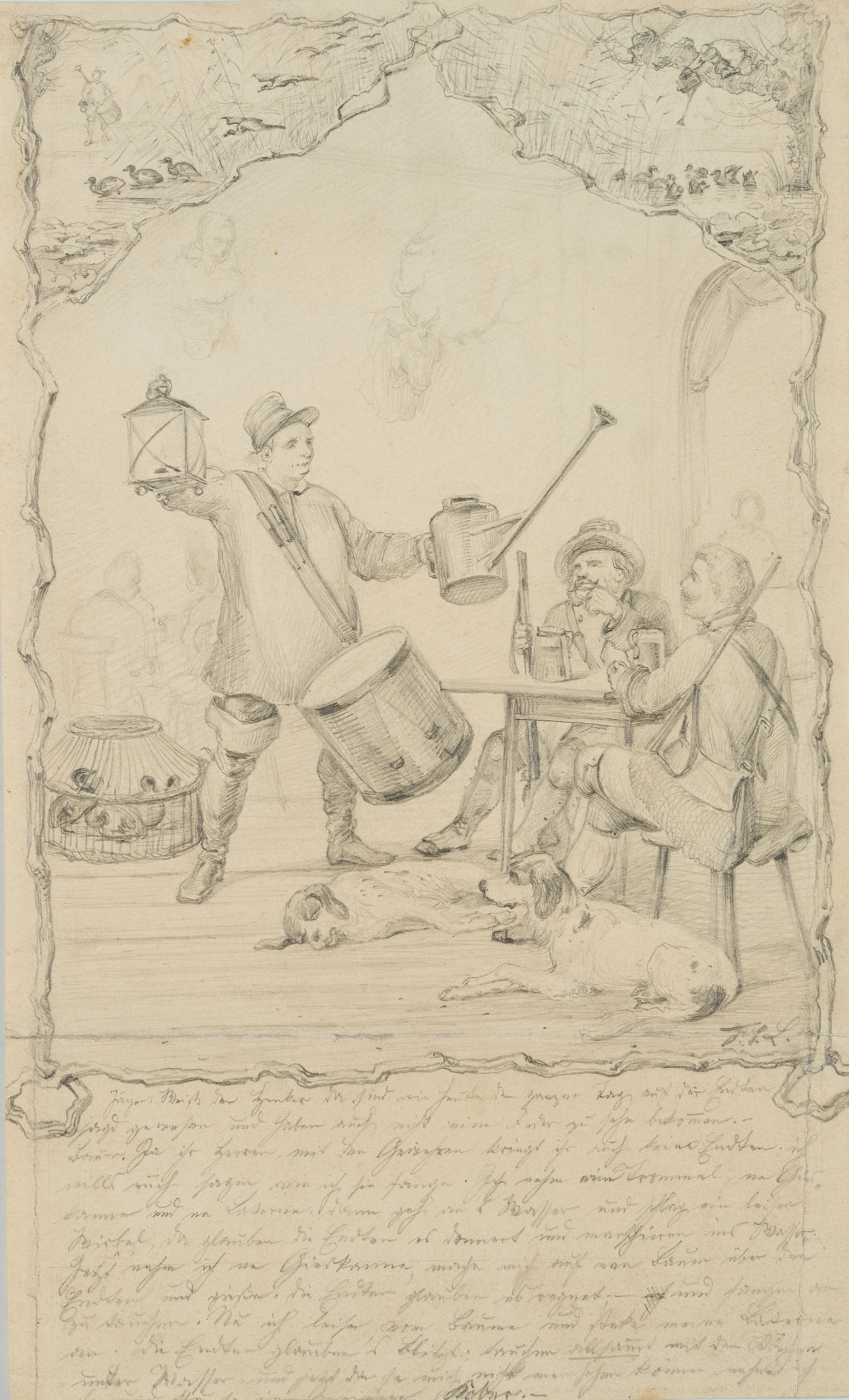 Ludwig Löffler (1819 Frankfurt on the Oder – 1876 Berlin) attributed, Hunting Scene Caricature, 19th century, Pencil