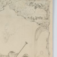 - Zustand: Guter Zustand. Der untere Rand mit dem Text geknickt, dort am linken Rand mit längerem, hinterlegtem Einriss. Die Ränder links und rechts ebenfalls leicht geknickt. Minimal fleckig.