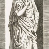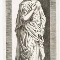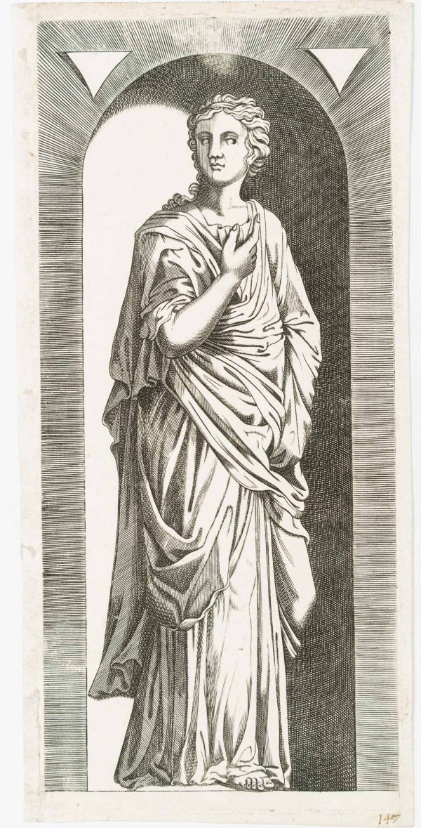 - Description: Depiction of a sculpture in a niche; standing robed figure after Lombard; he was strongly influenced by engravings of the Raphael school and it would not be impossible that he planned his own formulation of the theme, comparable to the New Testament scenes published by Jerome Cock.