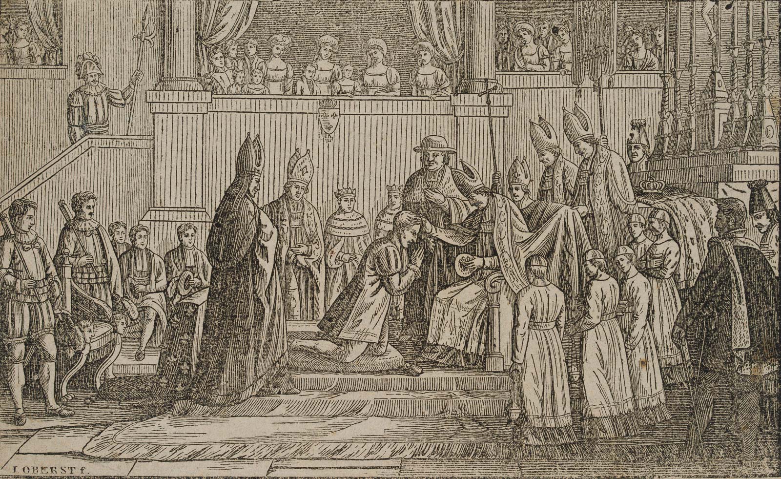 L. Oberst (17. Jahrhundert), Salbung eines Königs, , Holzschnitt