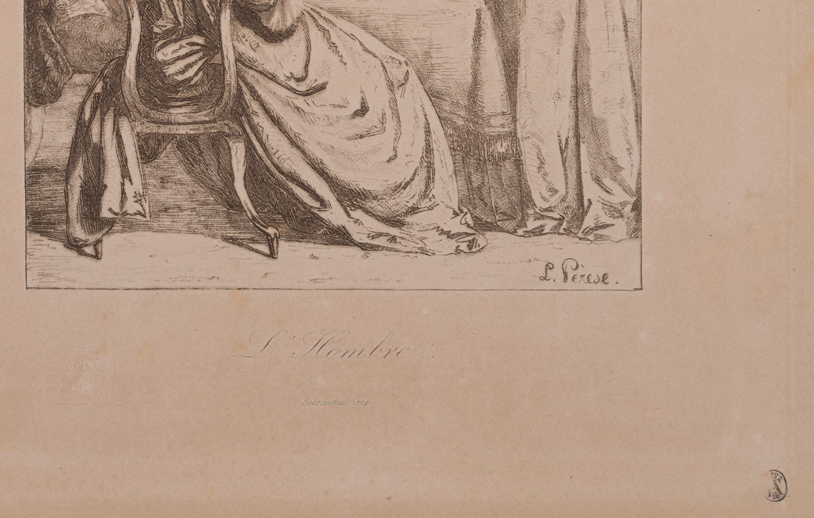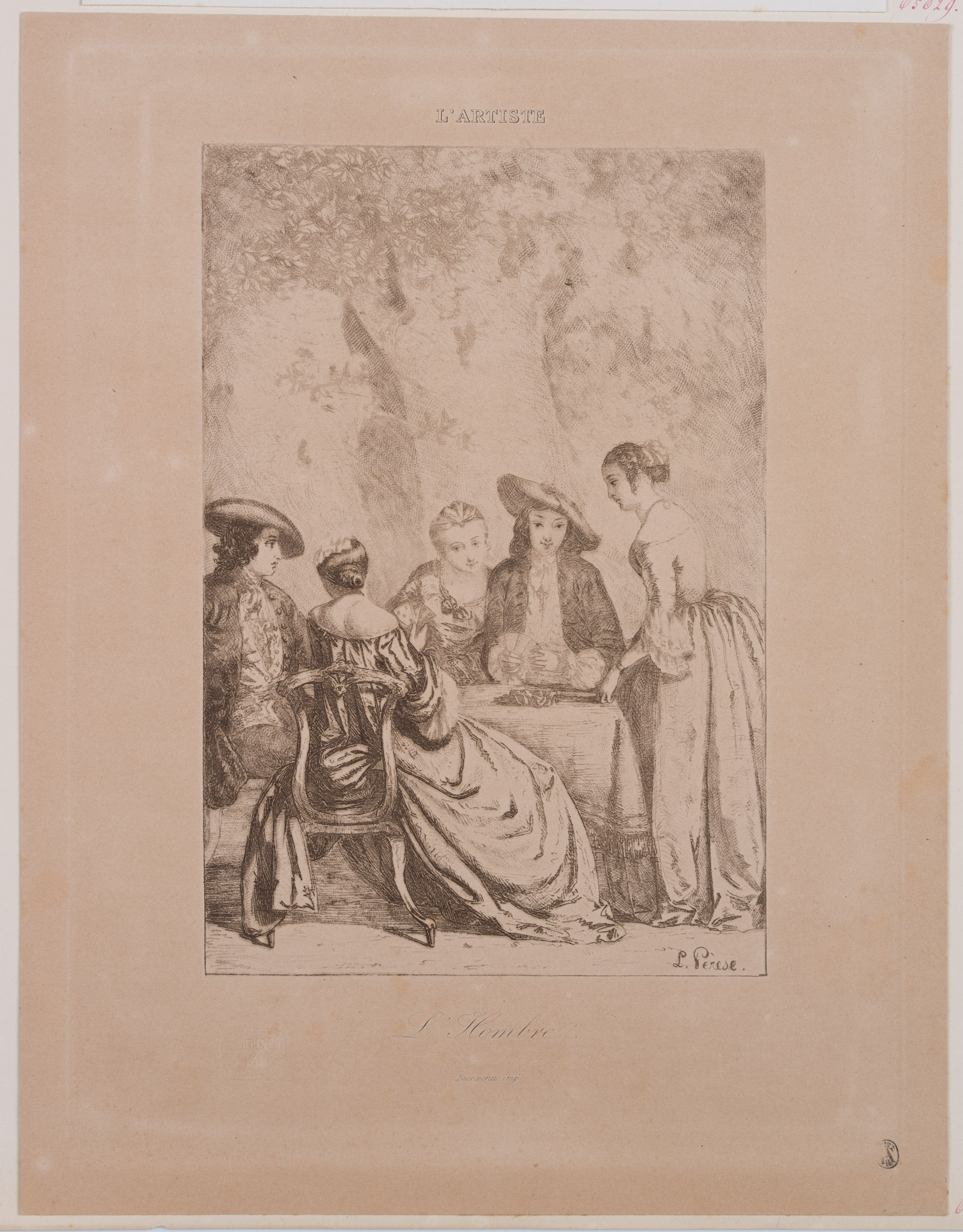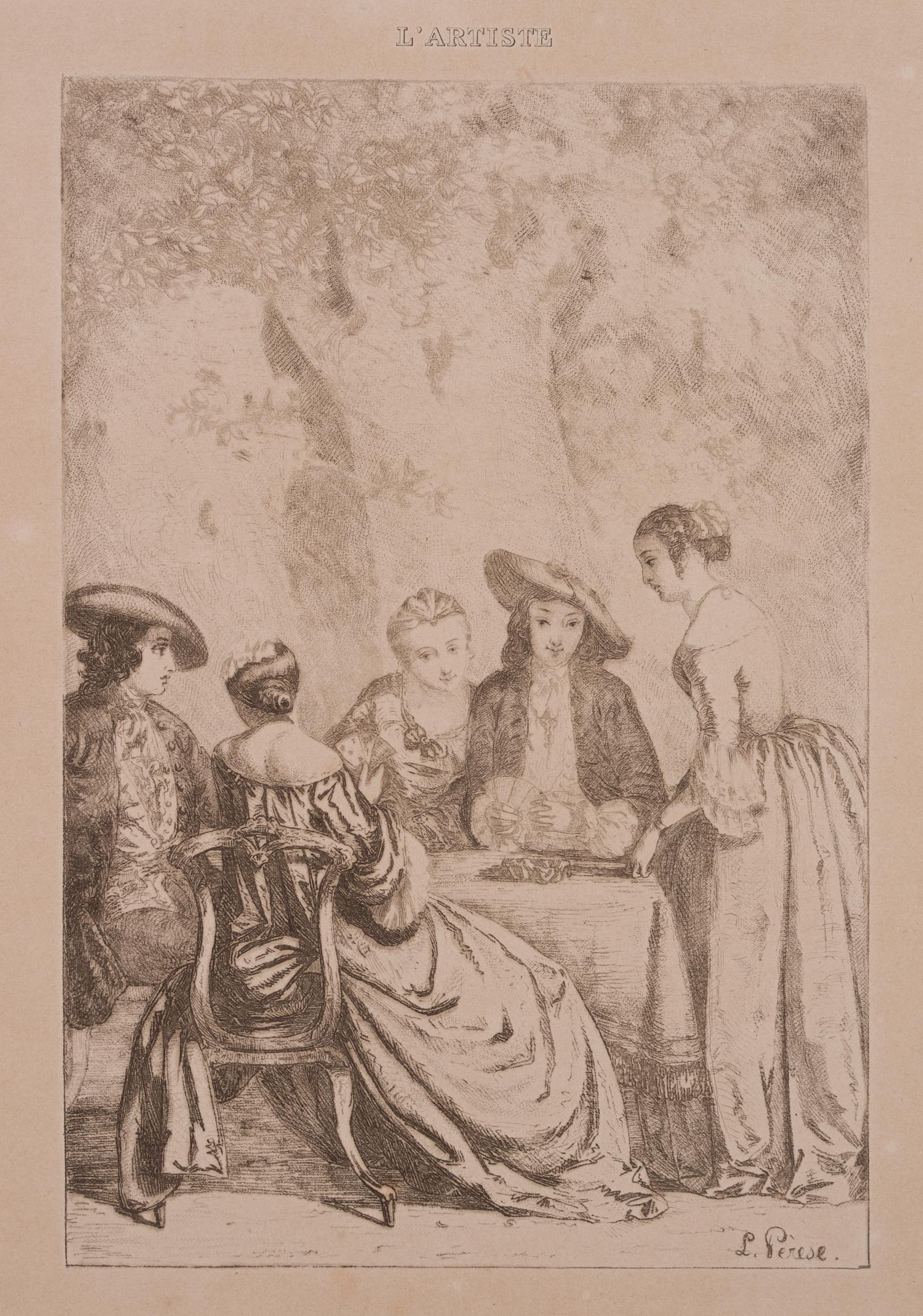 Leon Pérèse (19th century), PRSE, ‘L’Hombre’, Evening party at cards, Vernis mou, 19th century, Etching