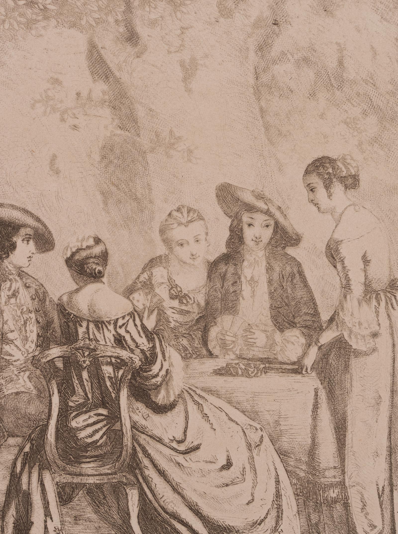 Leon Pérèse (19. Jahrhundert), PÉRÈSE, ‘L’Hombre’, Abendgesellschaft beim Kartenspiel., Vernis mou, 19. Jahrhundert, Radierung