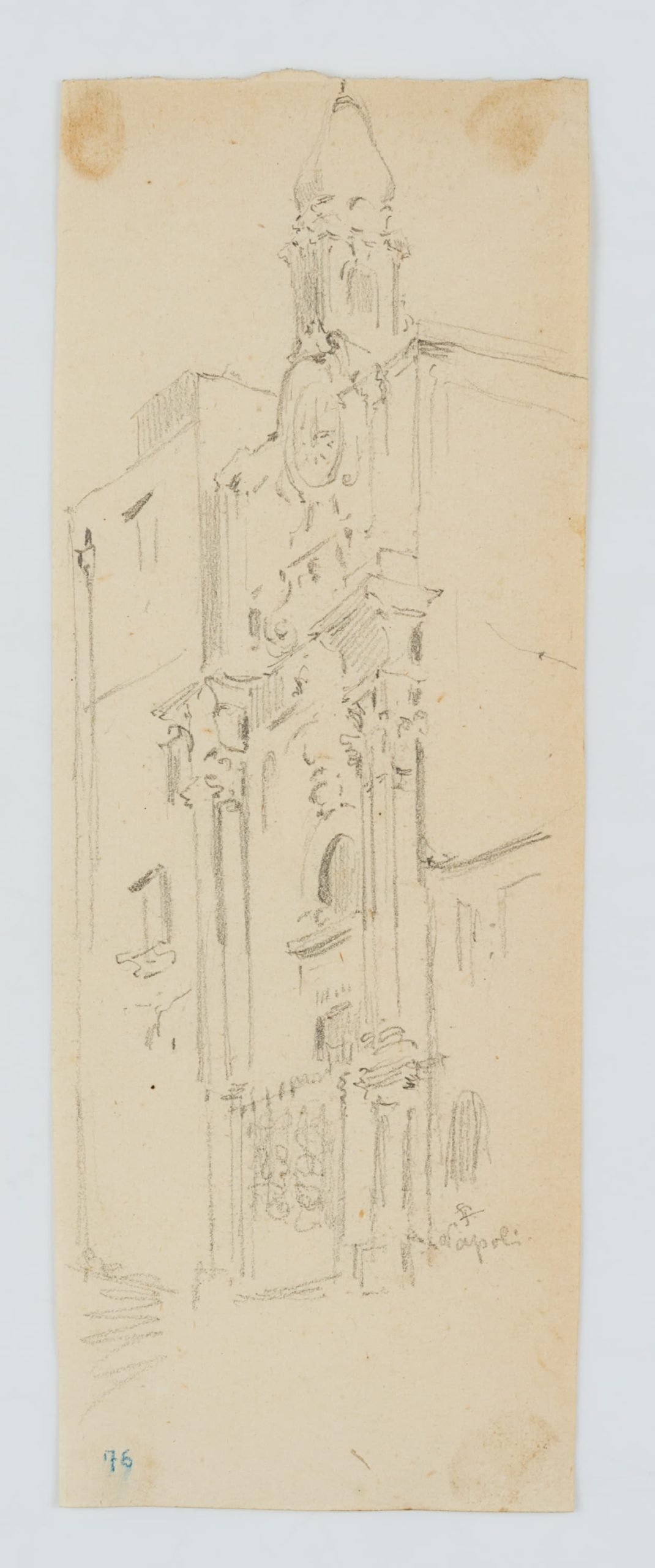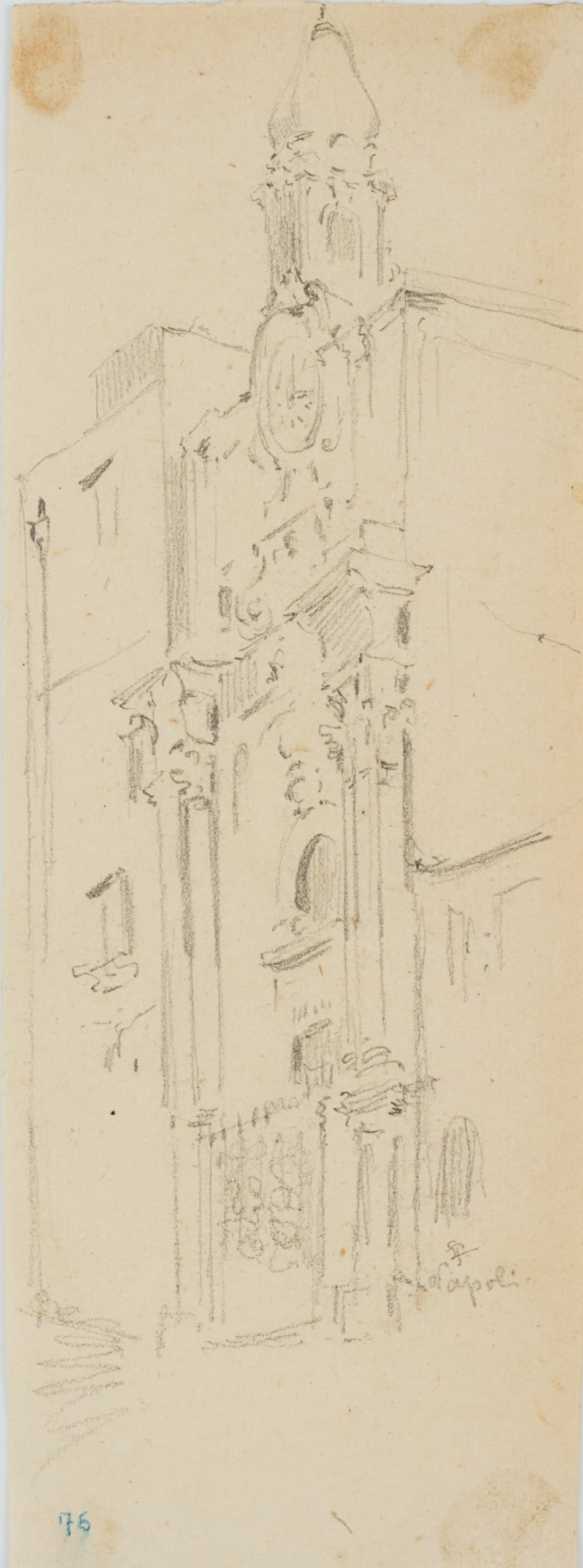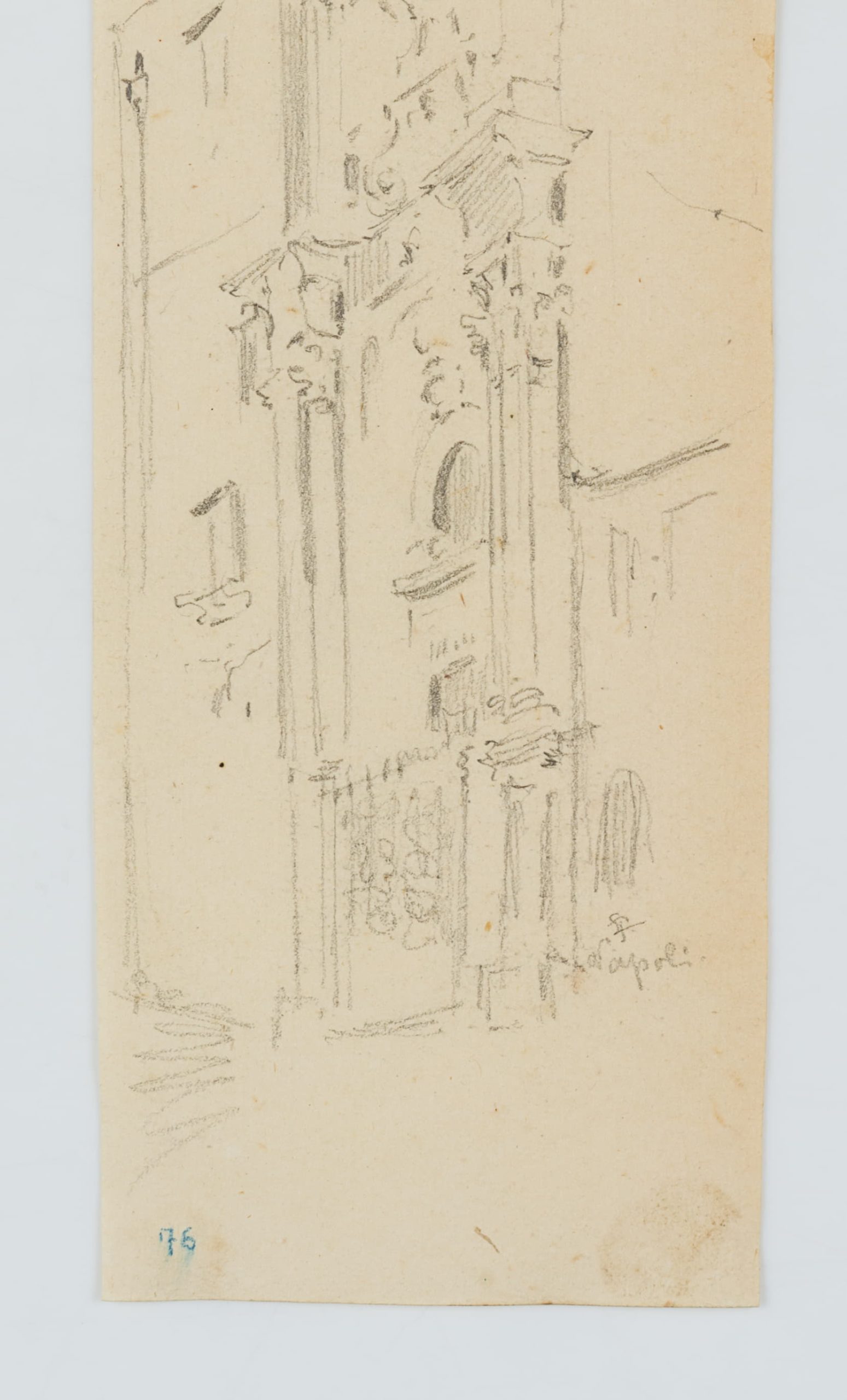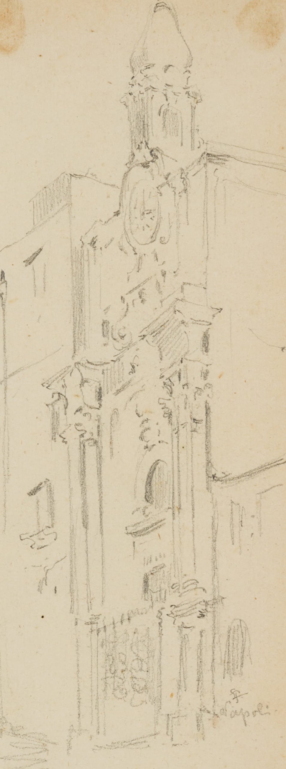 Leo Primavesi (1871 Köln – nach 1937 ), Barocke Kirchenfassade in Neapel, 1896, Bleistift