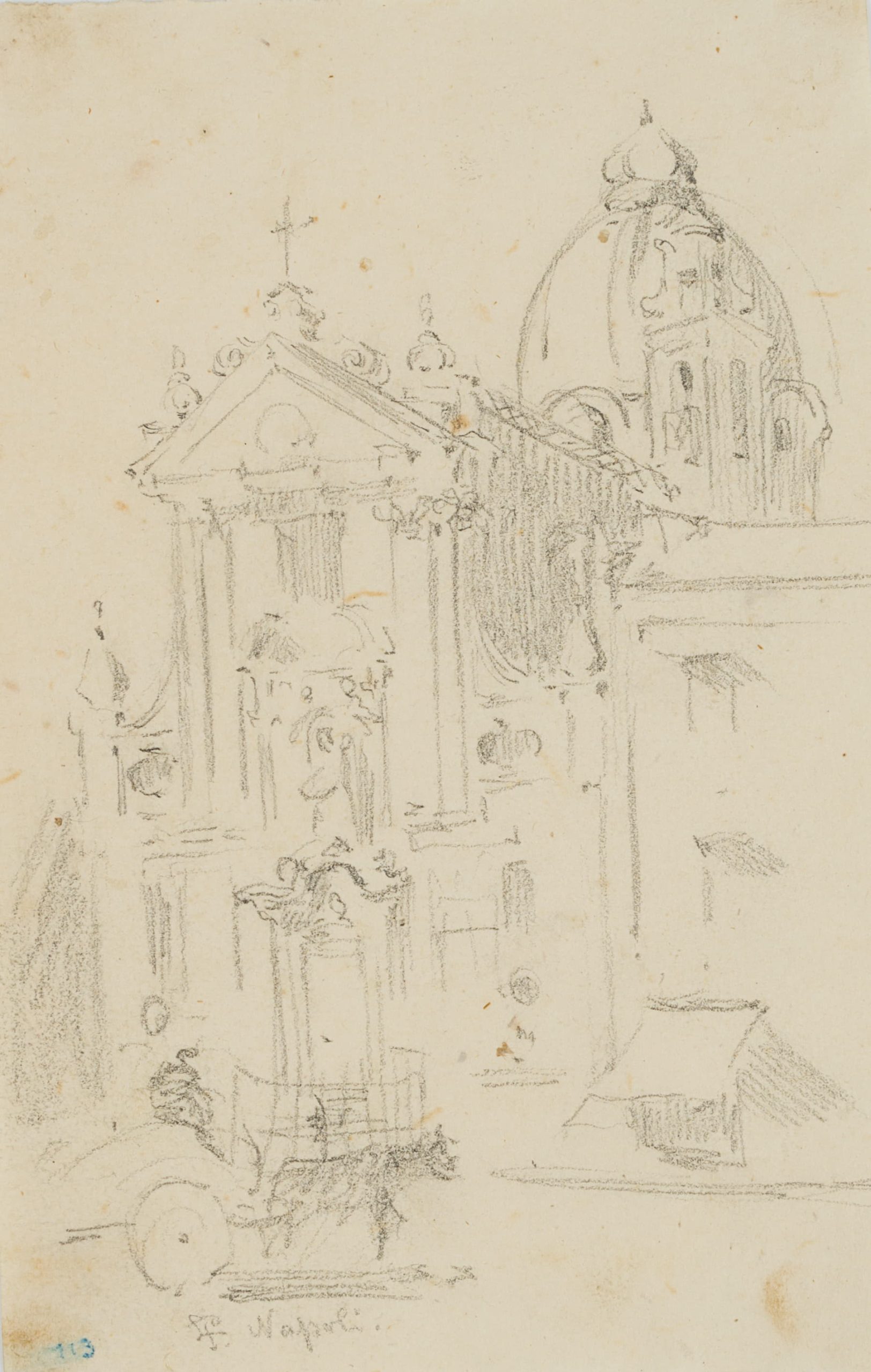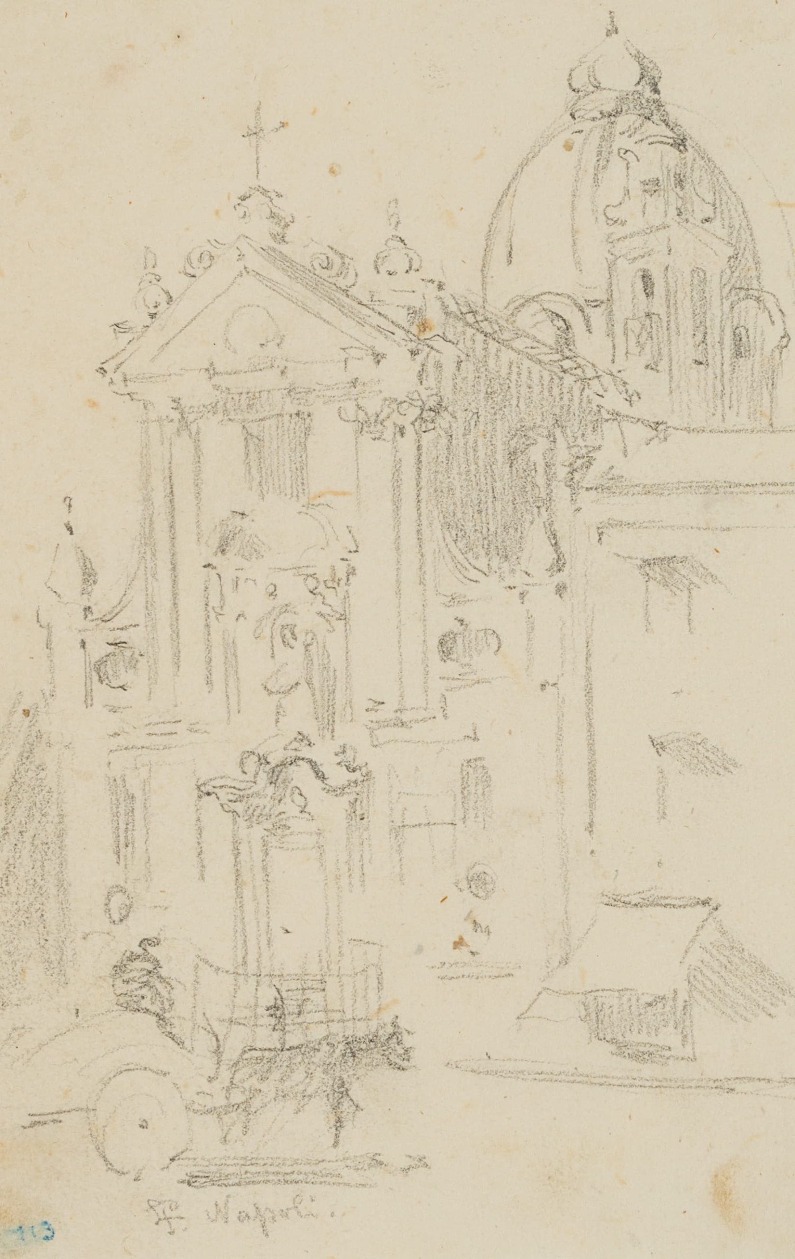 Leo Primavesi (1871 Köln – nach 1937 ), Barocke Kirchenfassade in Neapel, um 1896, Bleistift
