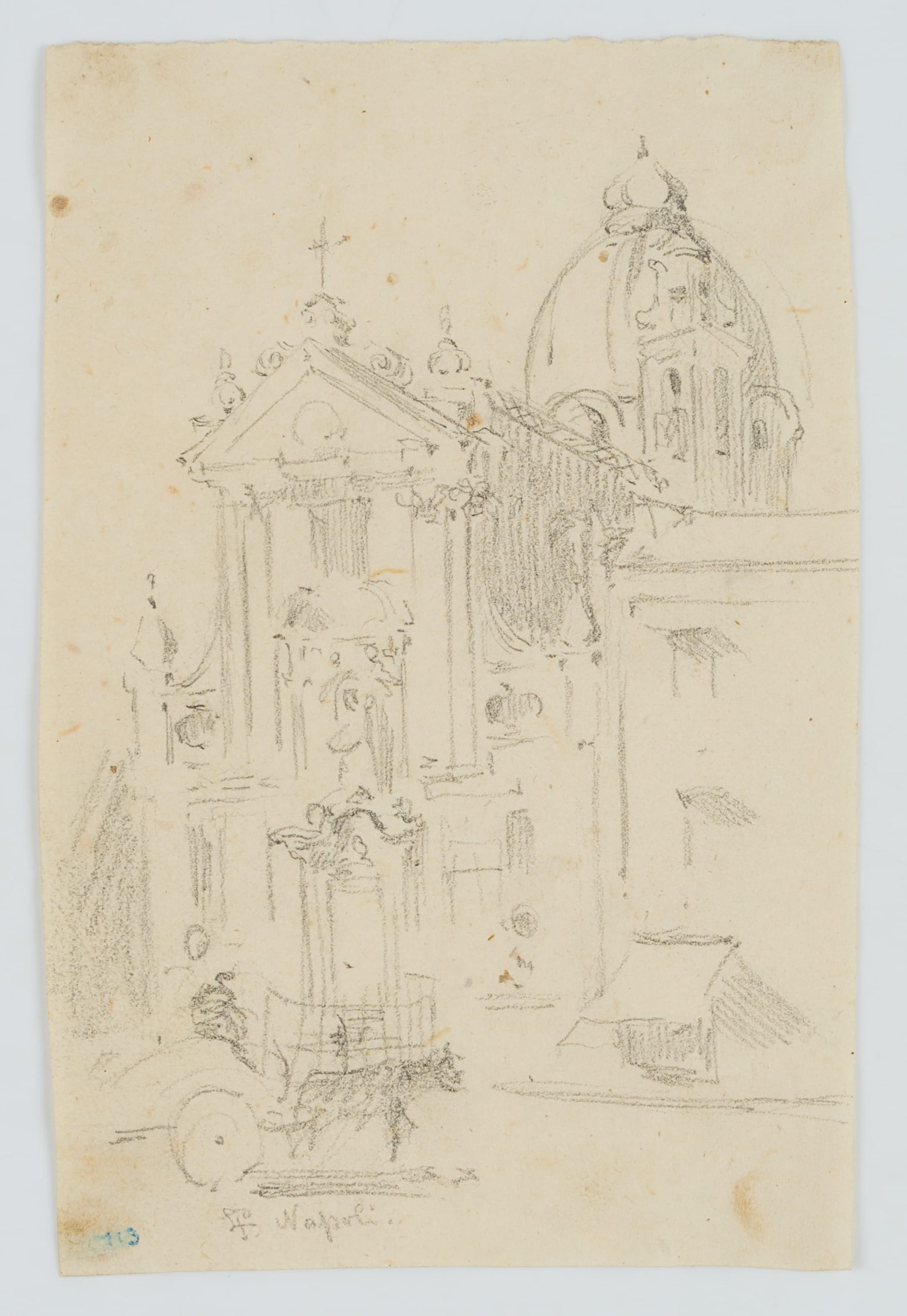 L. PRIMAVESI (*1871), Barocke Kirchenfassade in Neapel, um 1896, Bleistift