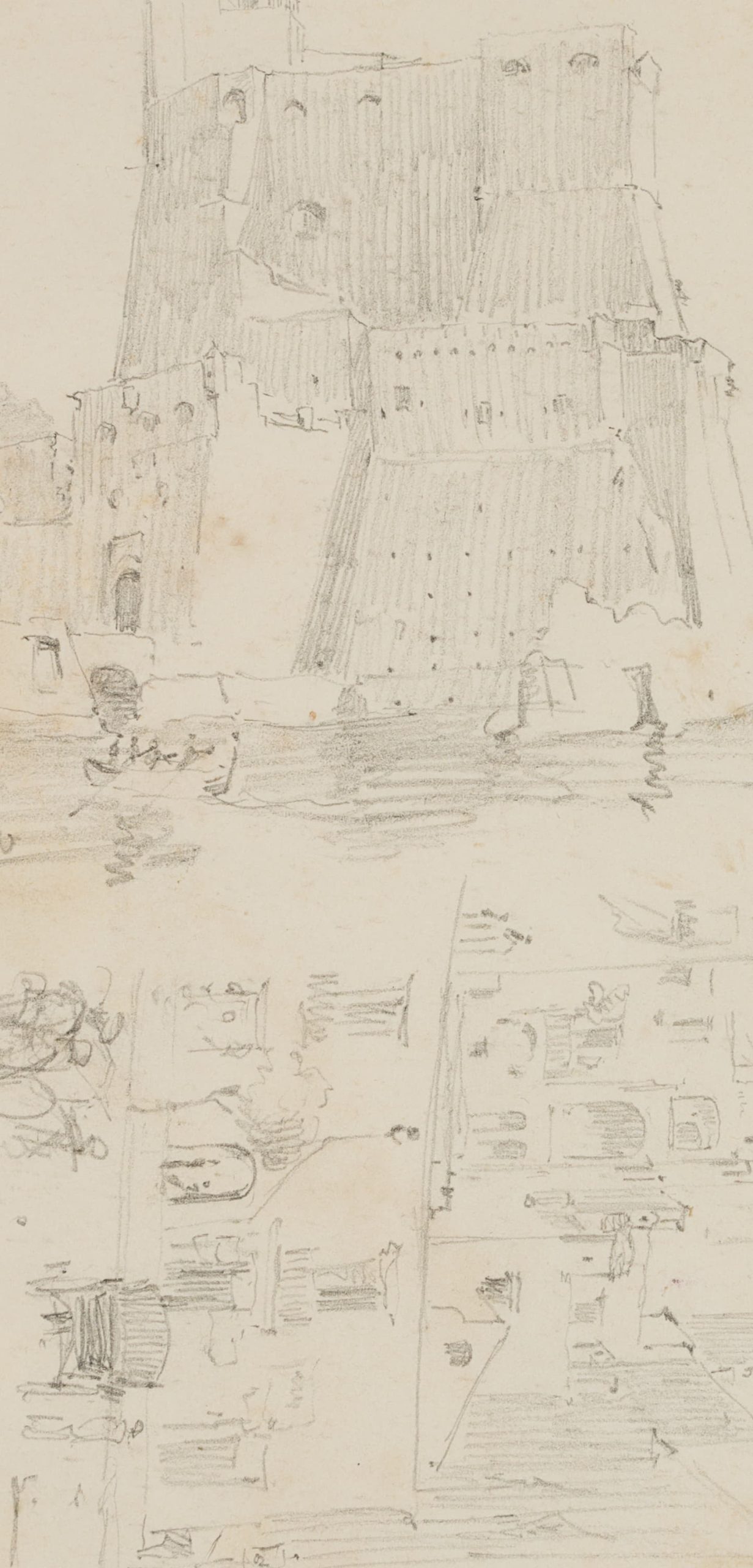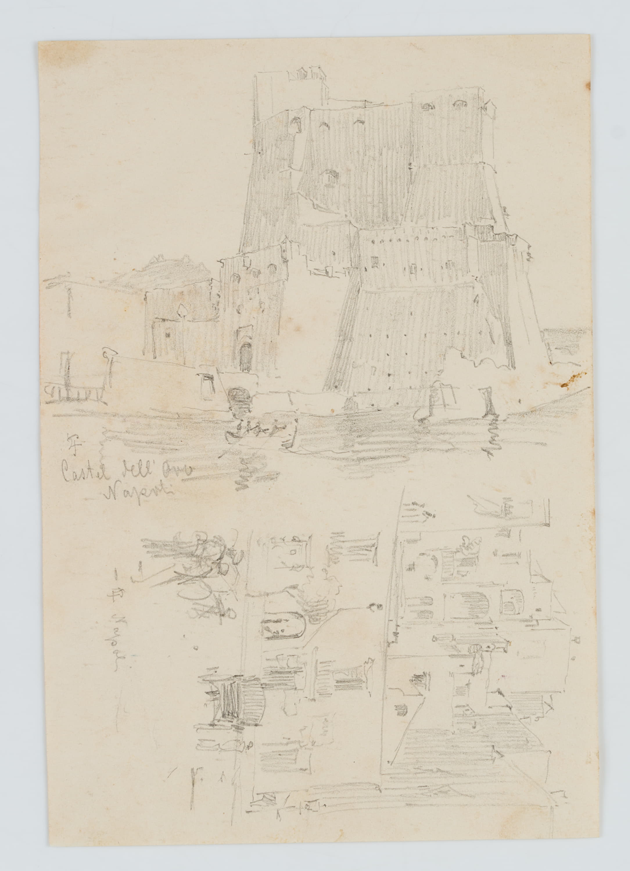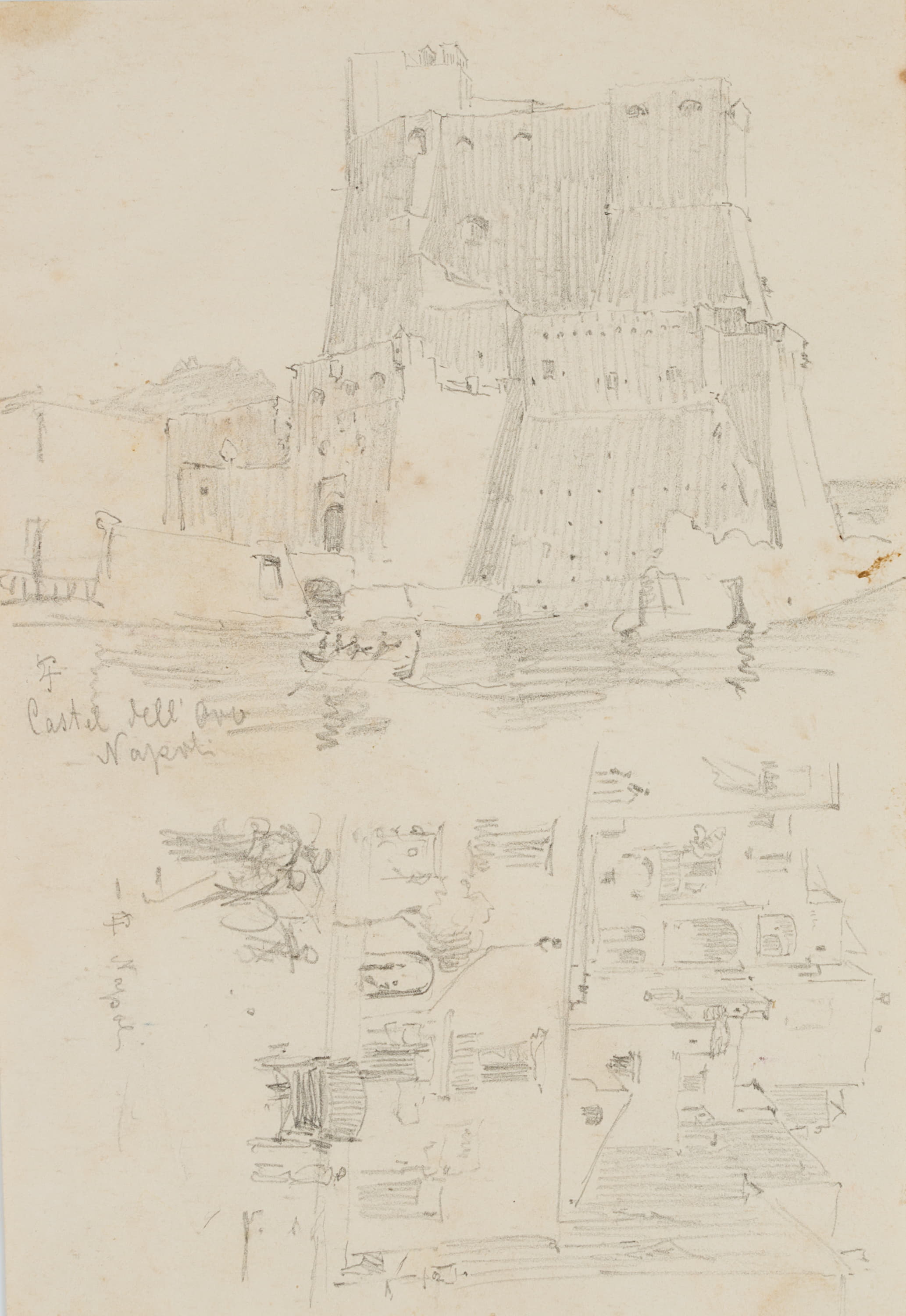 Leo Primavesi (1871 Cologne – after 1937 ), Castell dell’Ovo and street view, c. 1896, Pencil
