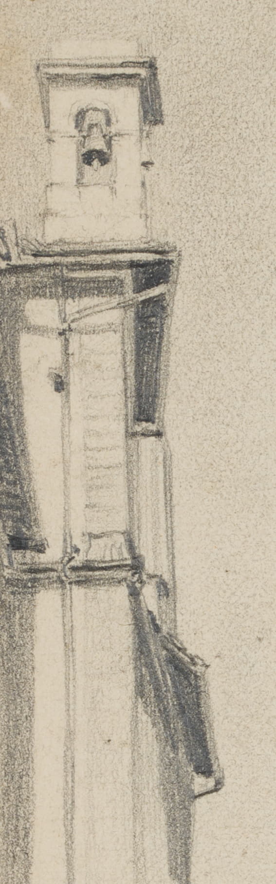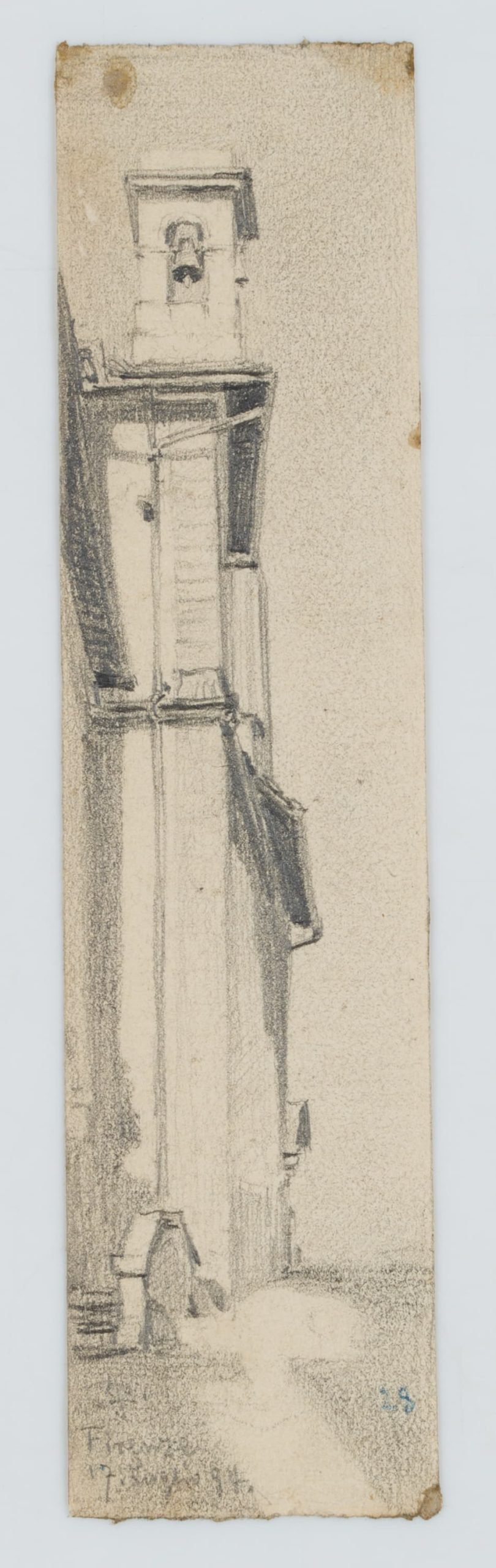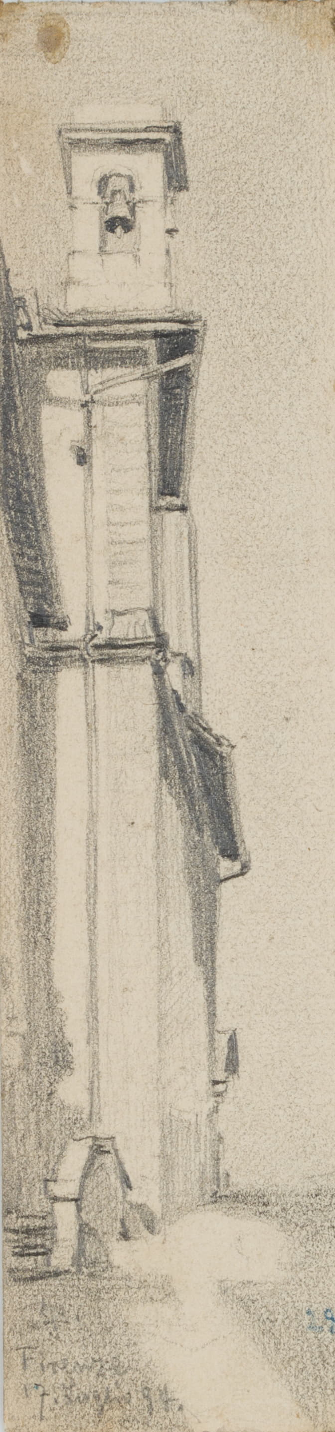 Leo Primavesi (1871 Köln – nach 1937 ), Kirchenfassade mit Glockenturm in Florenz, 1894, Bleistift