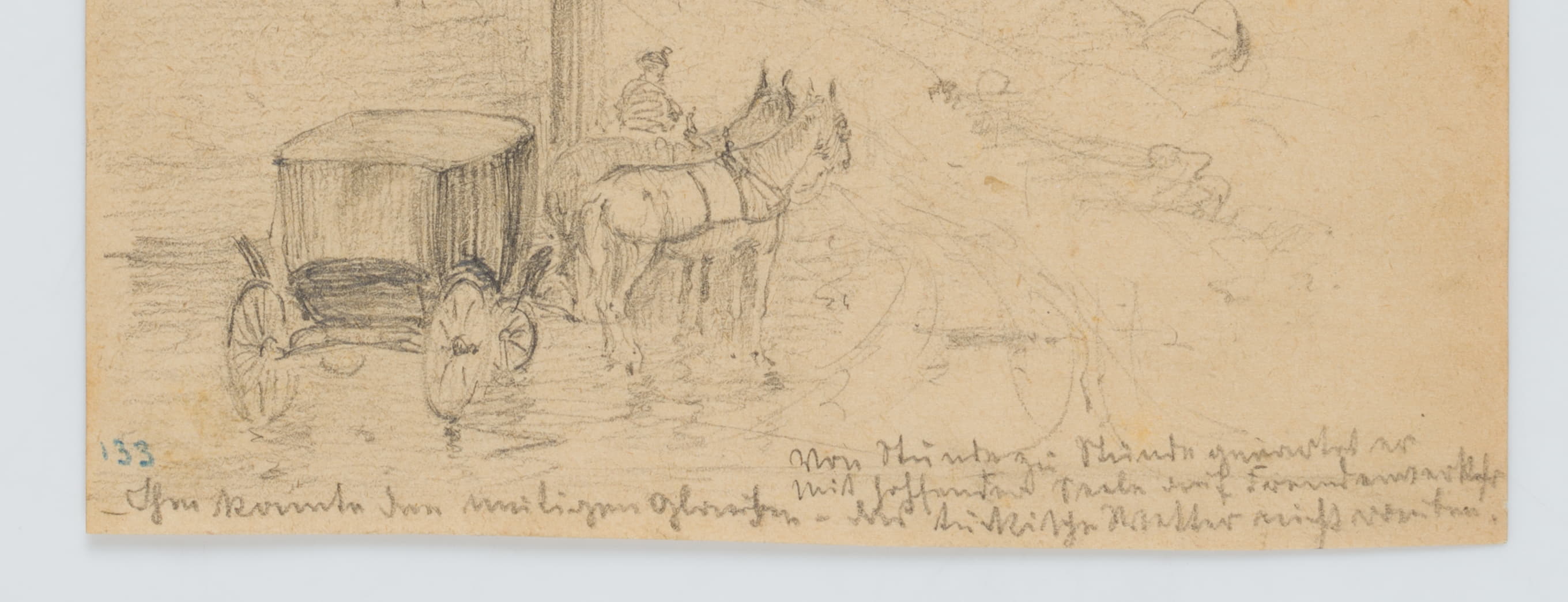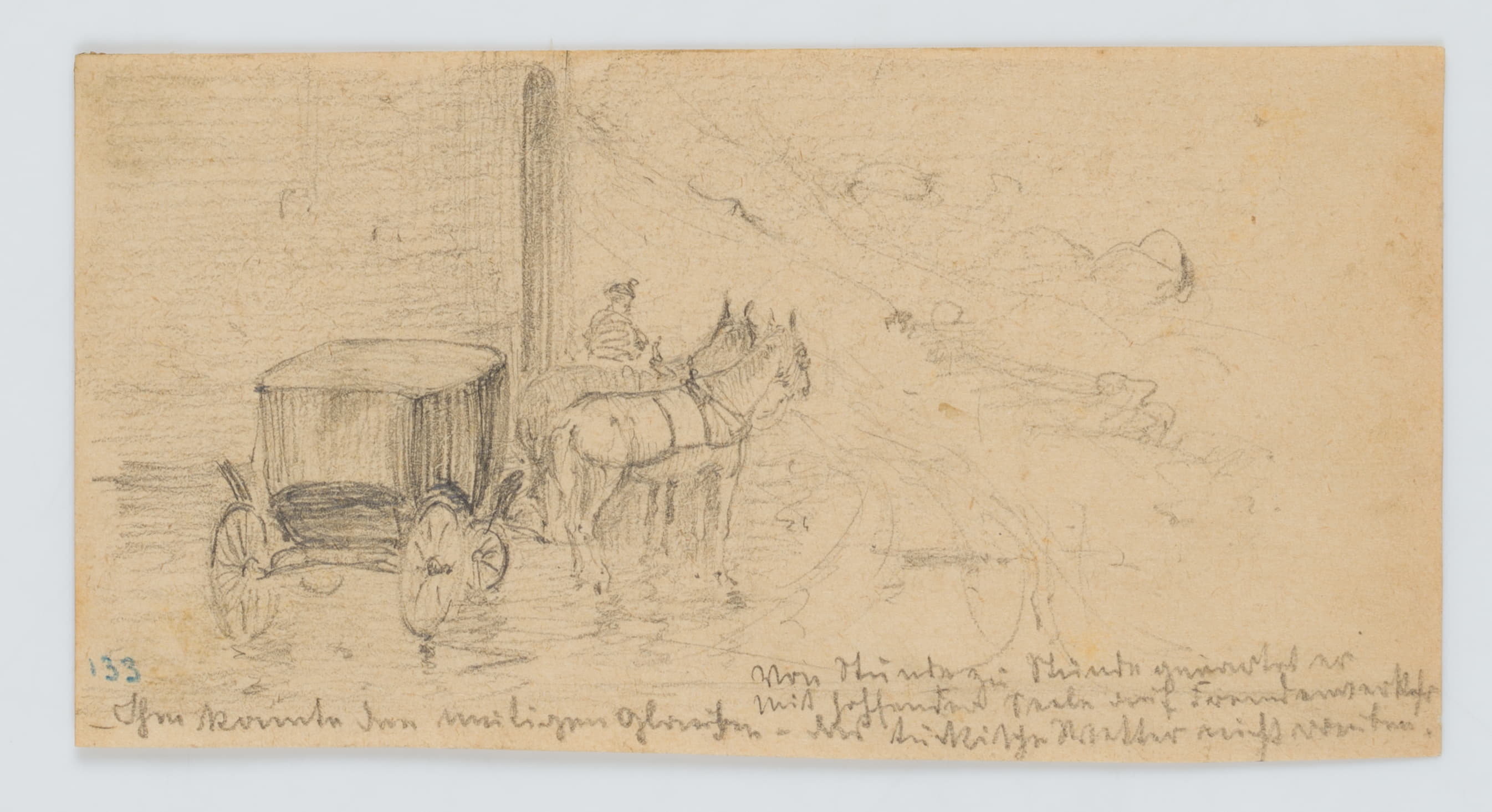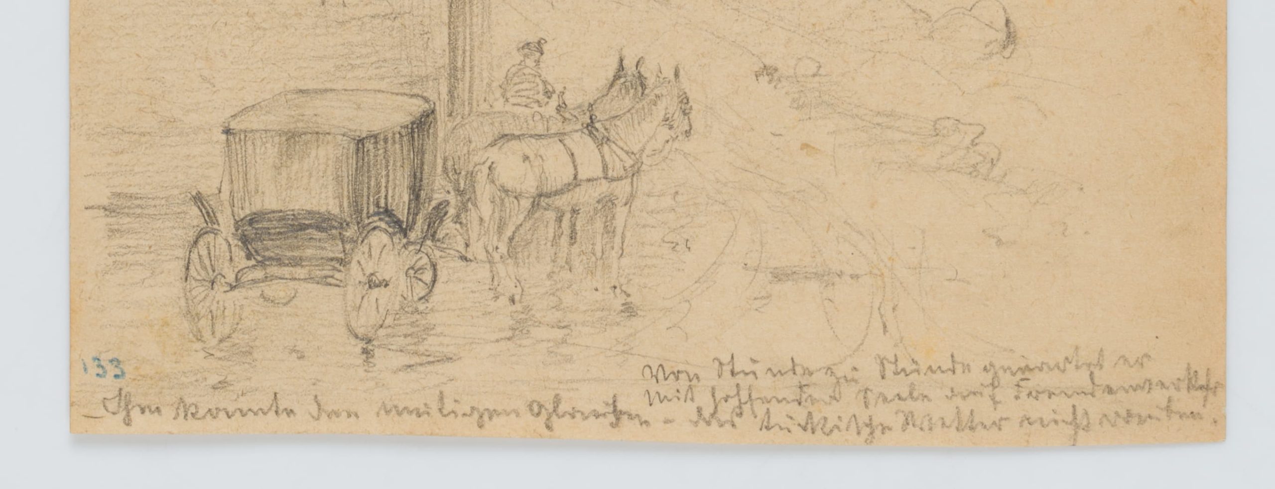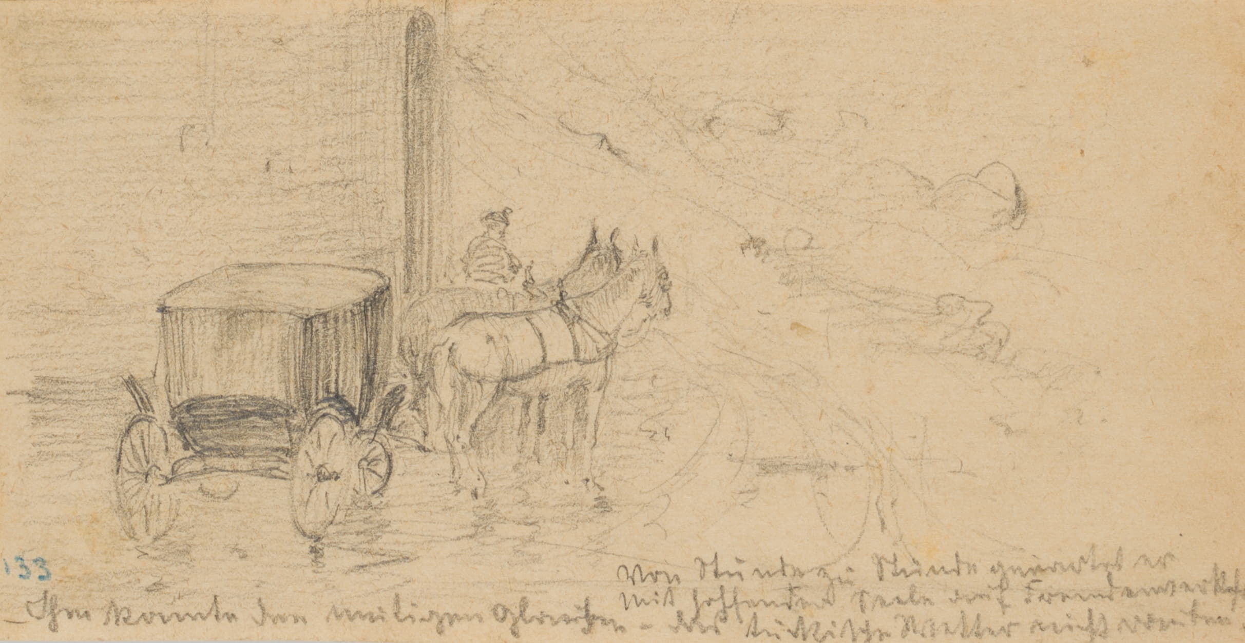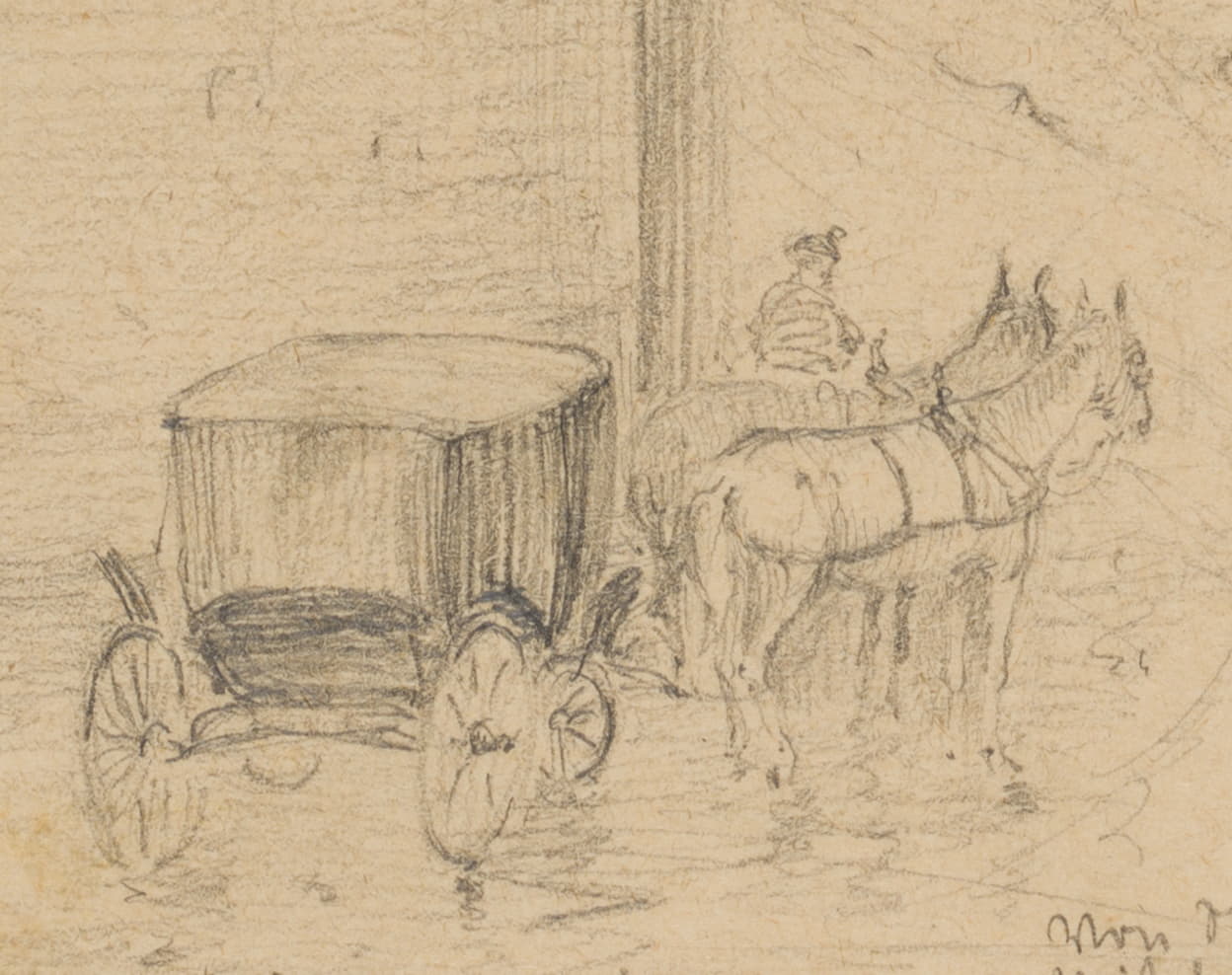 Leo Primavesi (1871 Cologne – after 1937 ), Carriage by the wayside, c. 1896, Pencil