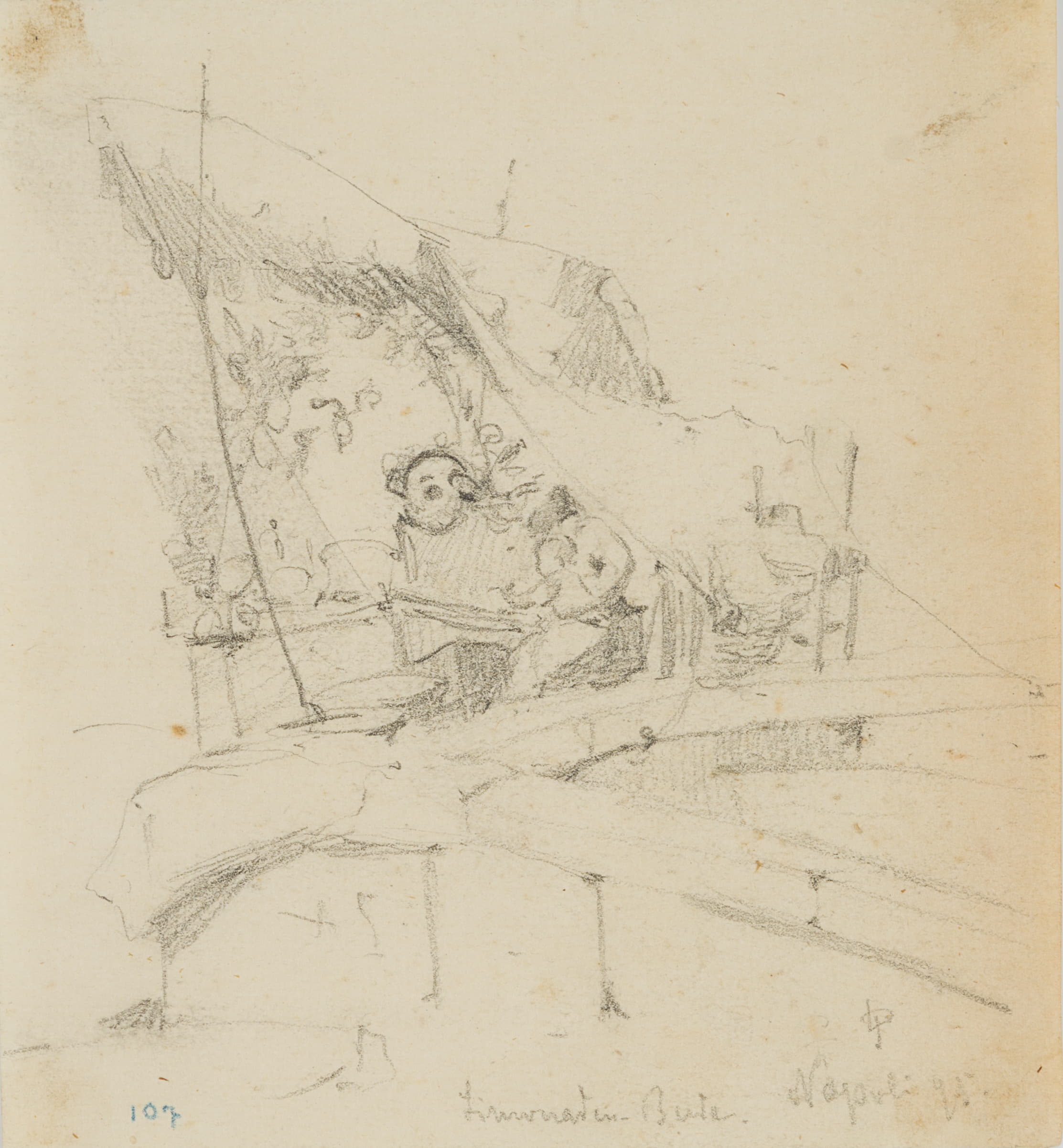 - Bezeichnung: monogrammiert: LP; bezeichnet und datiert: Limonaden Bude. Napoli 9[…]?, unten links nummeriert: 107