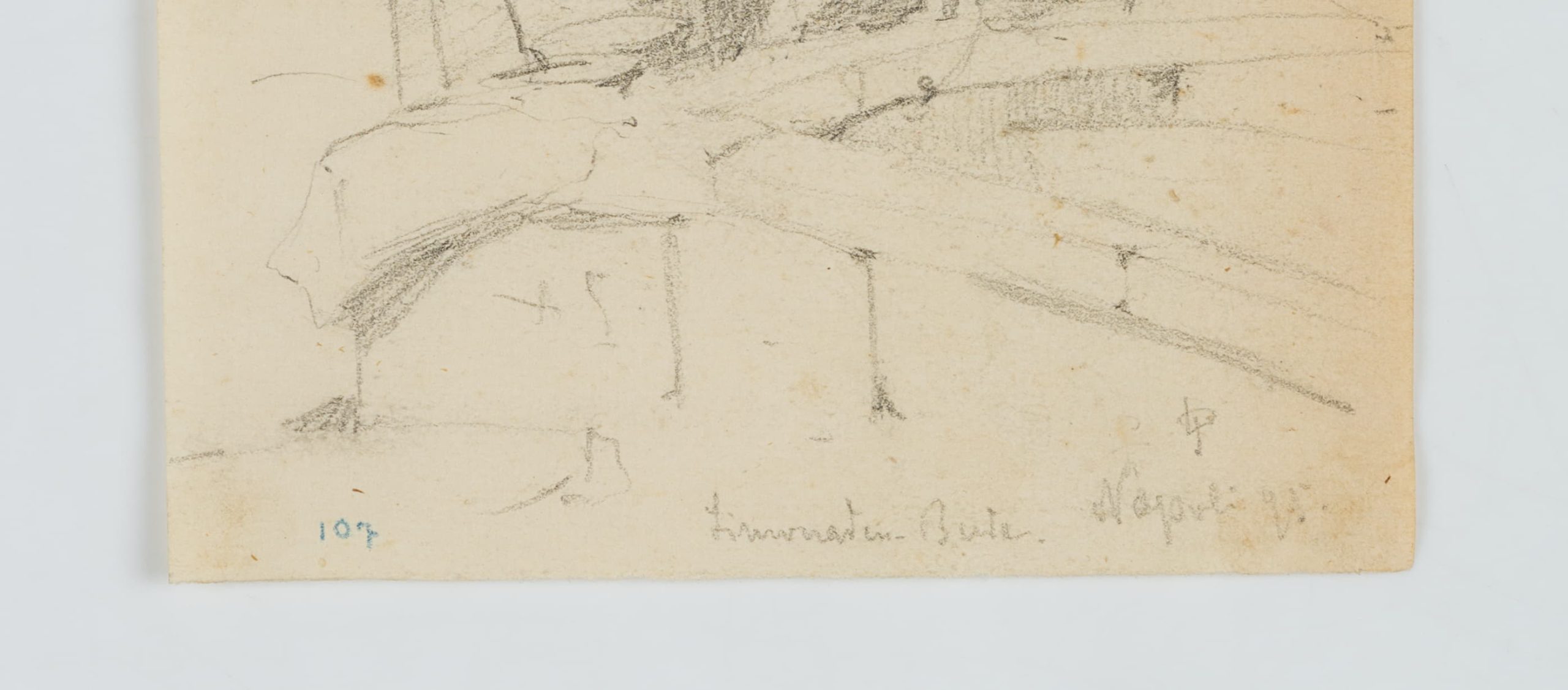 • Bezeichnung: monogrammiert: LP; bezeichnet und datiert: Limonaden Bude. Napoli 9[…]?, unten links nummeriert: 107