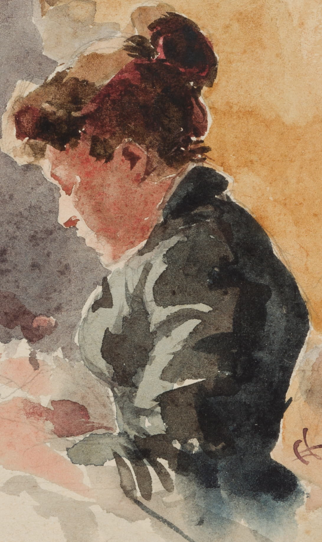 Leo Primavesi (1871 Köln – nach 1937 ), Porträt einer sitzenden Dame im Profil, 1894, Aquarell