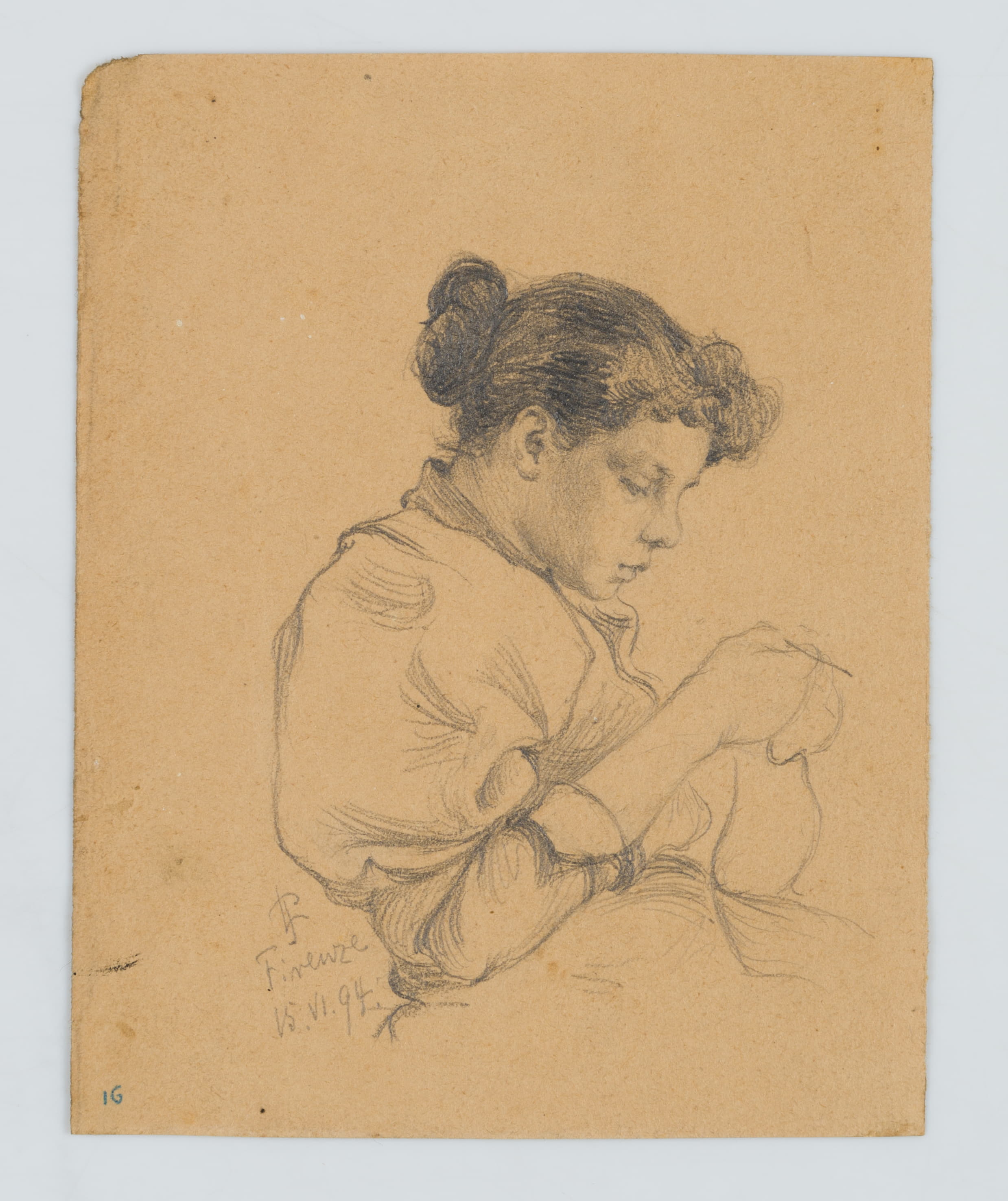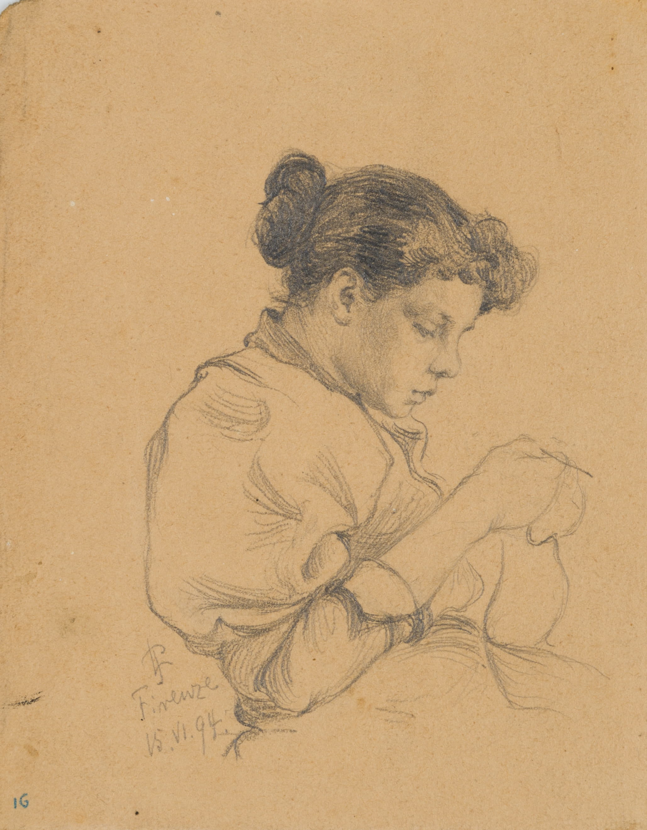 Leo Primavesi (1871 Cologne – after 1937 ), Portrait of an Embroidering Florentine, 1894, Pencil