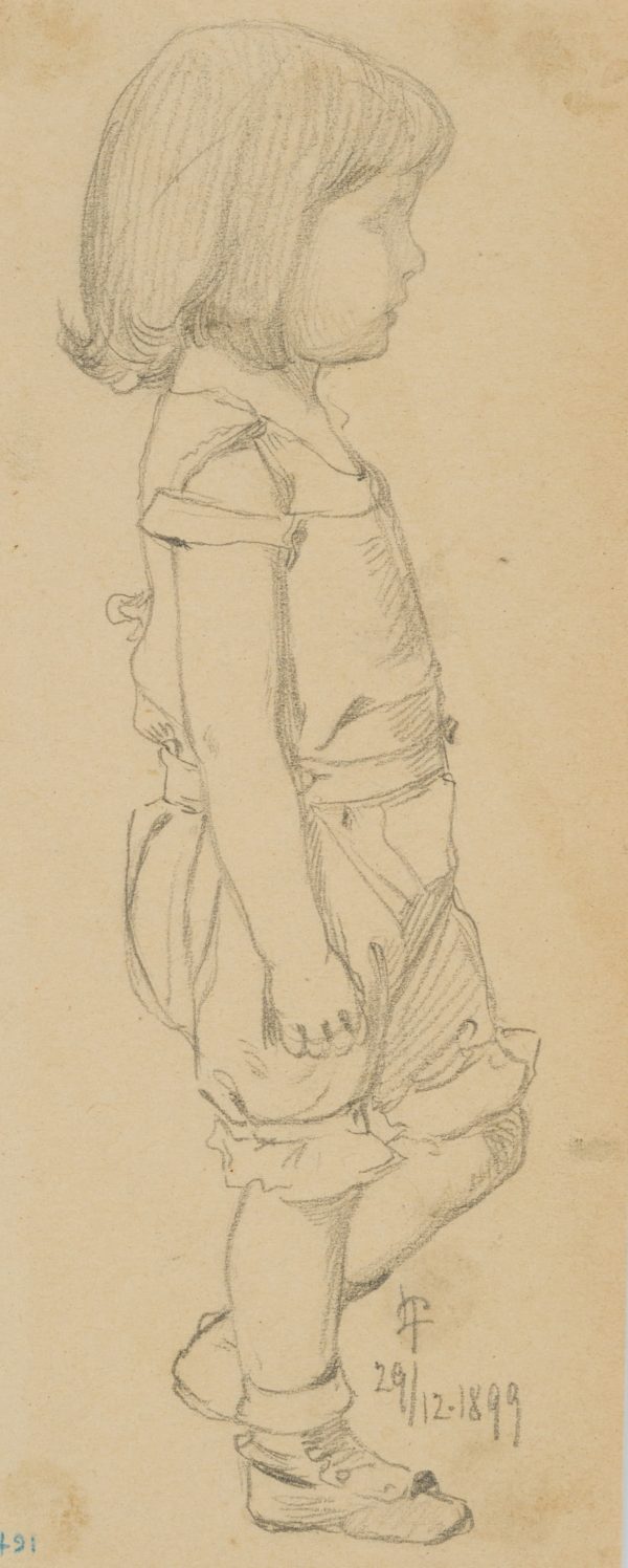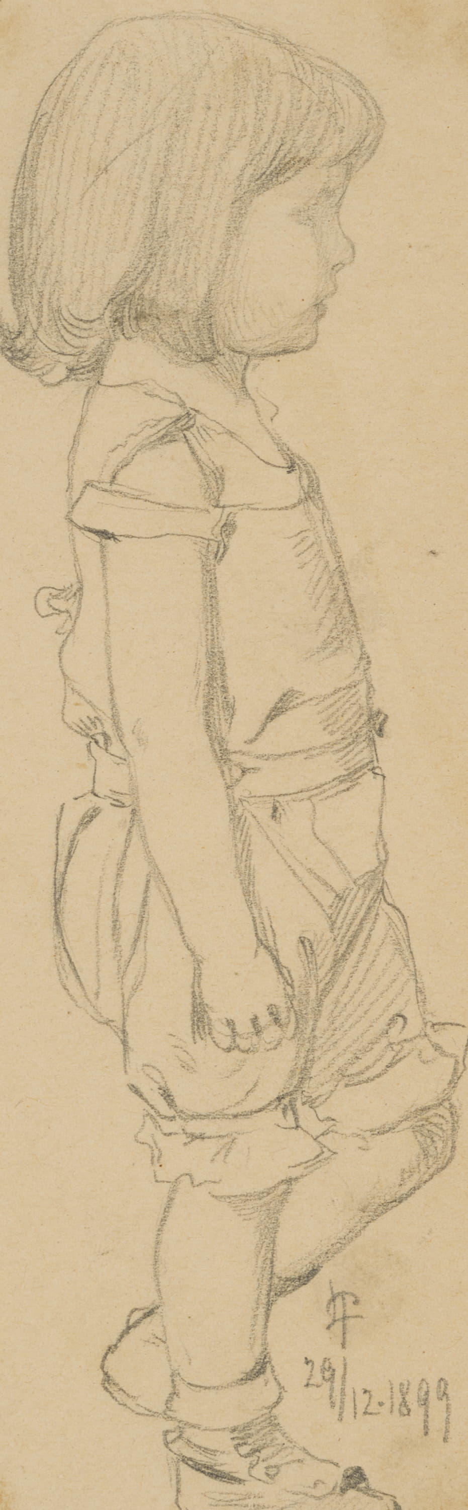 Leo Primavesi (1871 Köln – nach 1937 ), Porträt eines kleinen Mädchens im Profil, 1899, Bleistift