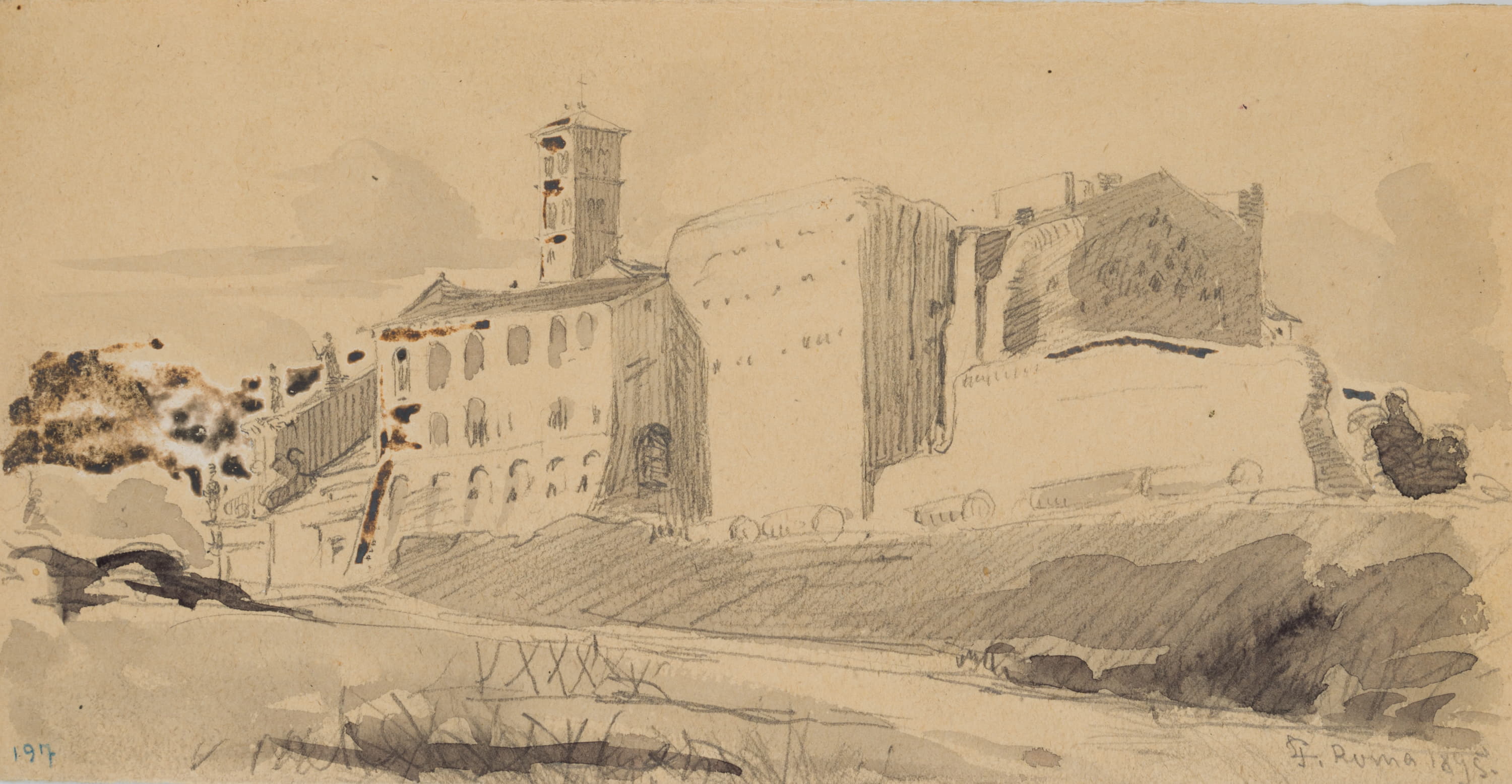 Leo Primavesi (1871 Cologne – after 1937 ), Roman ruins, 1895, Pencil