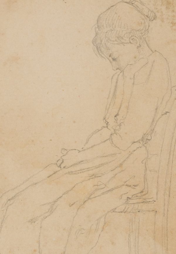 Leo Primavesi (1871 Köln – nach 1937 ), Porträt eines schlafenden Mädchens auf einem Stuhl, um 1896, Bleistift