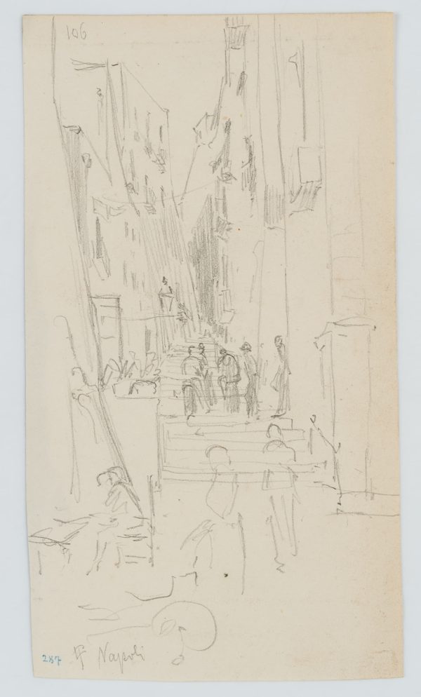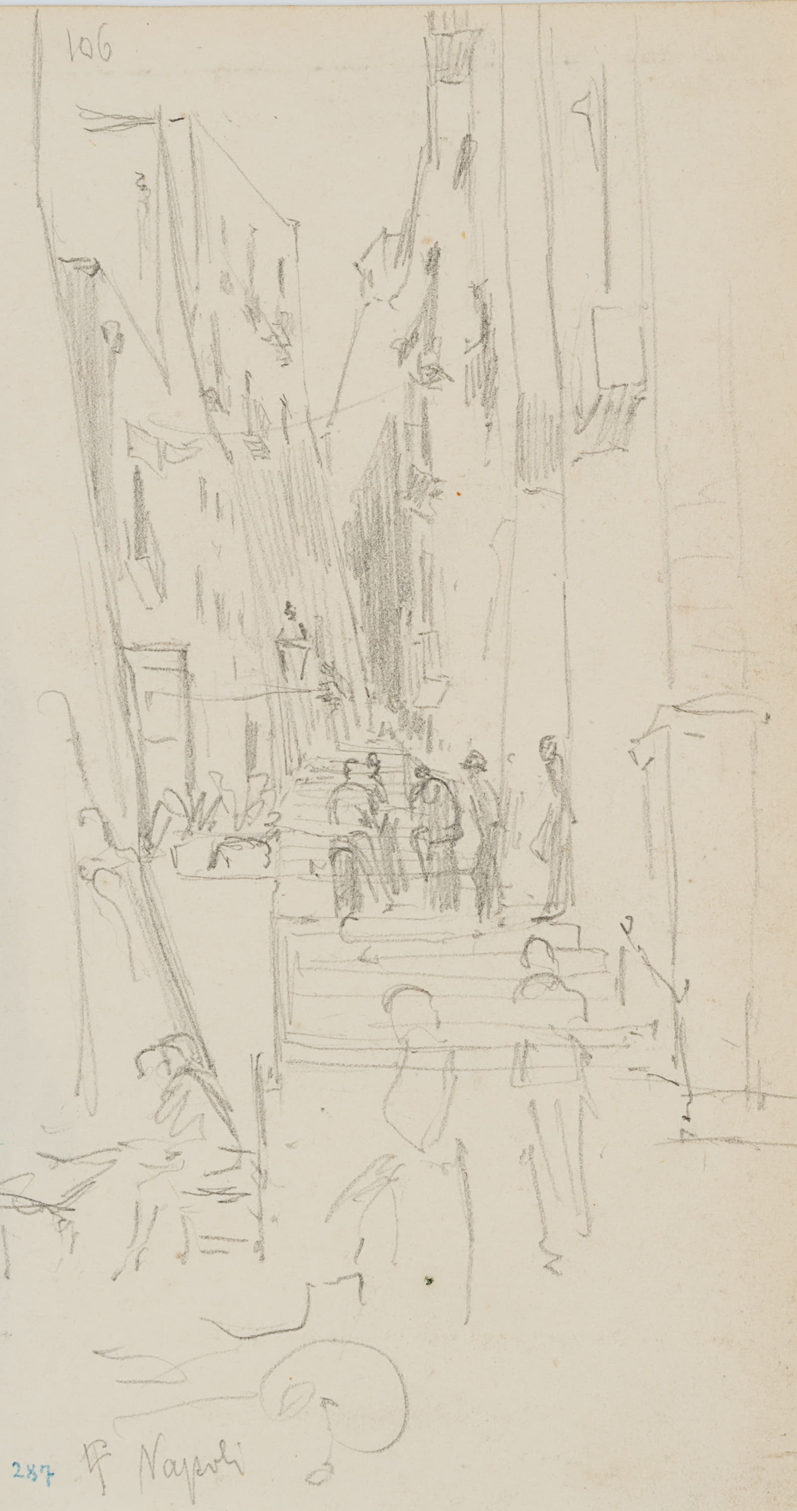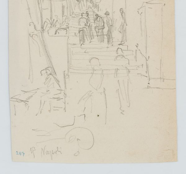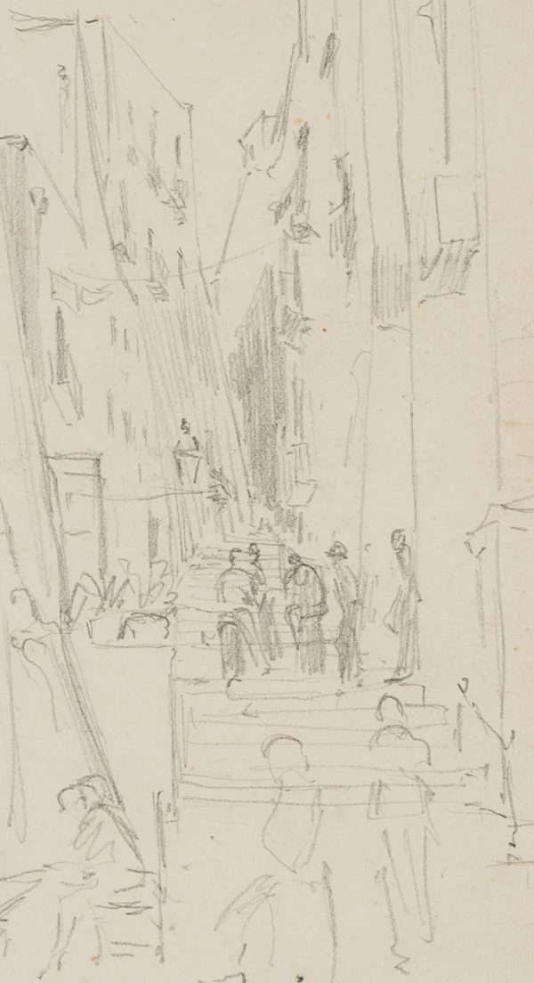 Leo Primavesi (1871 Köln – nach 1937 ), Straßenansicht mit Treppe in Neapel, um 1896, Bleistift