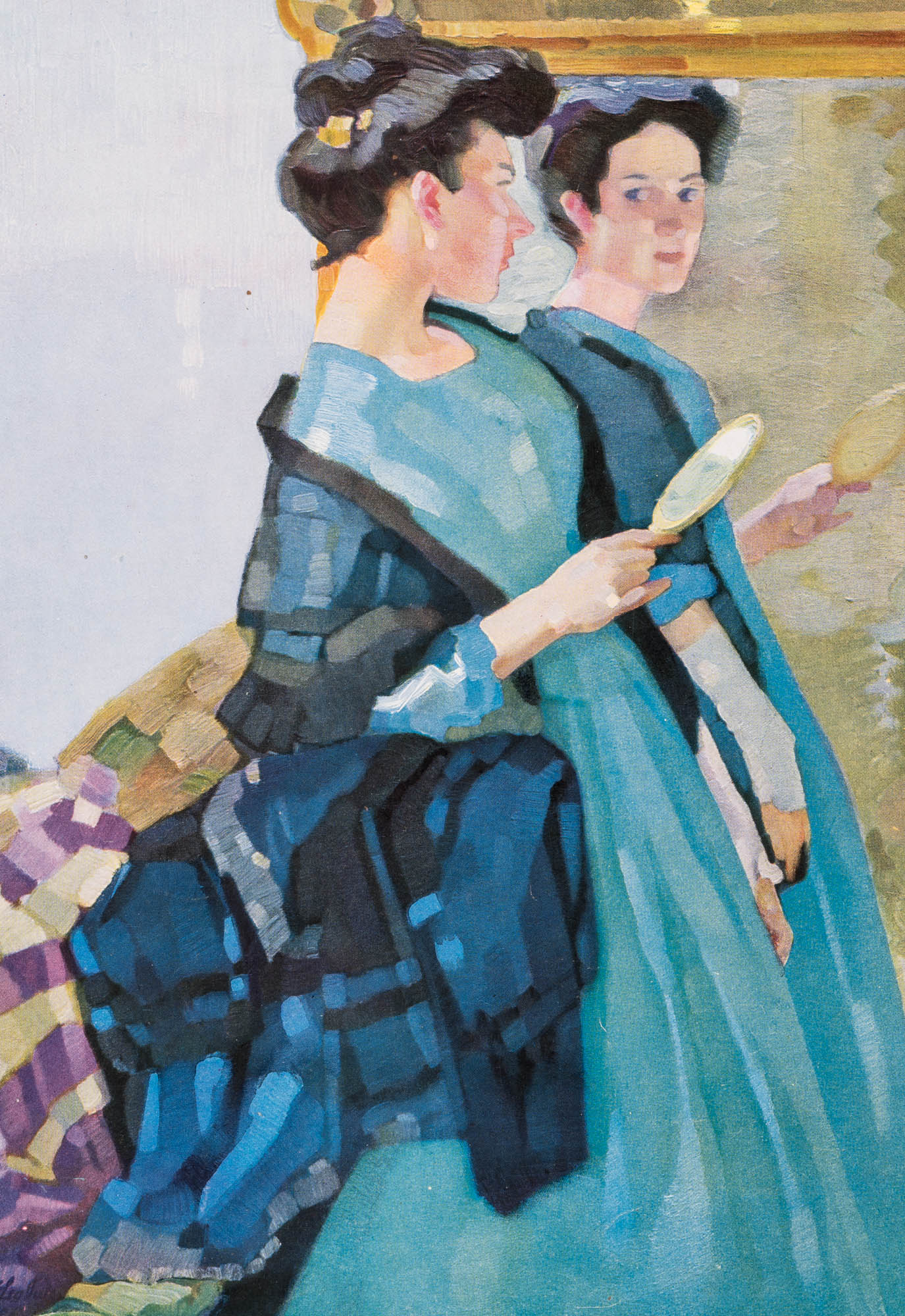Leo Putz (1869 Meran – 1940 ibid.), Mirror Image, Portrait of a Lady in Front of the Mirror, from the magazine ‘Jugend’, art print no 3832, c. 1900, Reproduction